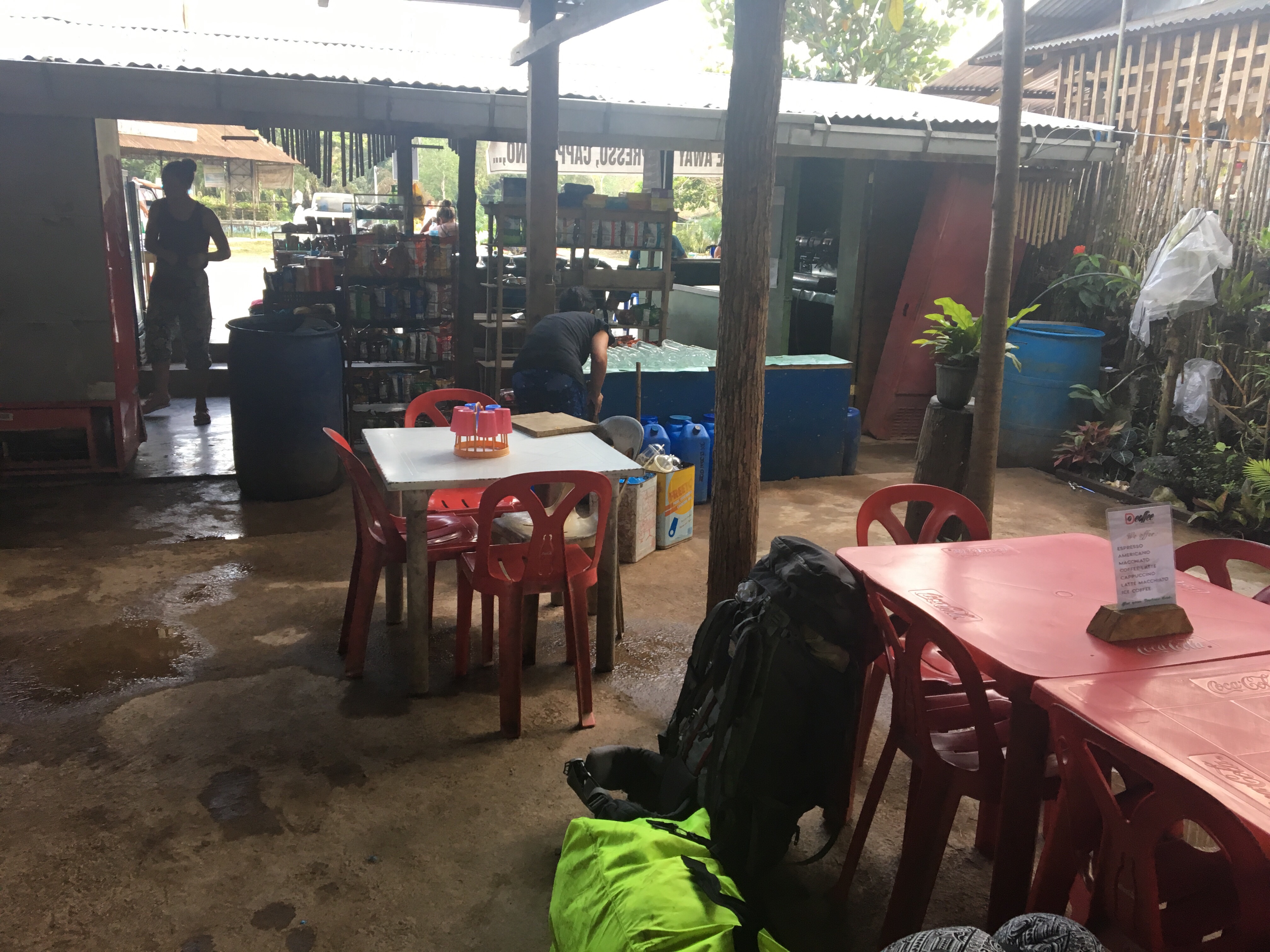 Na pondělí jsme měli jasno, vyrazíme do národního parku Puerto-Princesa Subterranean River. Ke snídani jsme si dali místní hotdog s chilli omáčkou a zároveň zajišťovali půjčení skútru. Je super proplétat se tímto živým městem se spoustou troubících tříkolek, motorek a aut 😁 Natankovali speciál, koupili brýle (tutově pravé RayBany za 100 pesos /41 Kč/ 👍) a vydali se na 2 hodinovou jízdu džunglí. Silnice mají celkem slušné a s malým občerstvením nám to hezky utíkalo. Asi 10 km před cílem nás zastavil pěkný déšť.