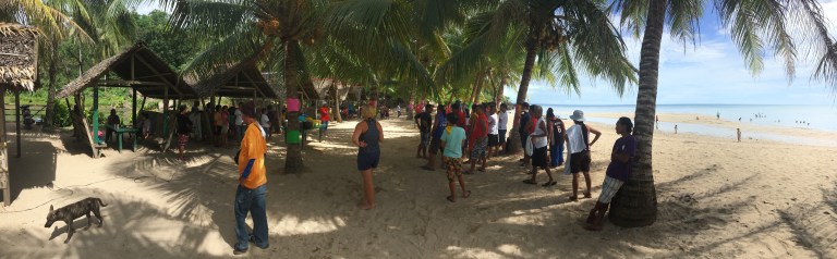 Bylo neskutečné jak nás začali hostit, hned jsme dostali místní rum s limetkovým džusem a další následovaly. Přinesli nám uvařené kořeny manioku /něco jako sladké brambory/, sladkou rýži s něčím smíchanou, chladné kokosové mléko s proužky kokosu a kousky oplatek…vše strašně dobré. Cokoliv jsme vypili, nebo snědli, už tam byl někdo další a ten to doplnil🤪 Hráli tam hry, zpívali, tančili /při pánské volence byla v kole i Terka🌴/ a šplhali na bambus. Přinesli 6 metrový bambus, na užší konec připevnili asi 1000 pesos, na vrchní 3 metry namazali takovou kluzkou hmotu a celé to zakopali do písku. No nasmáli jsme se u těch jejich pokusů🤣 a stihli se i vykoupat. Neopakovatelný zážitek.