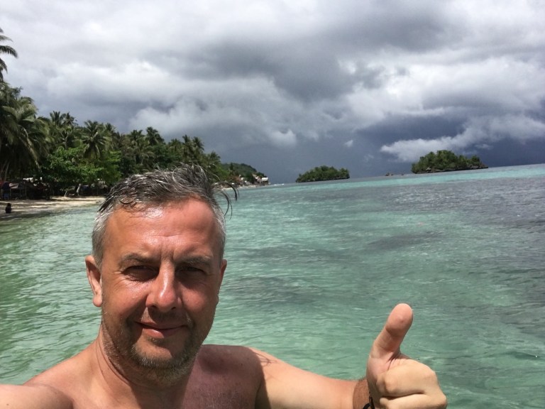 Když bylo po dešti, přišlo z vedlejší chatičky pozvání k rodinnému obědu. No, nechtěli jsme urazit. 😇 Seznámili jsme s Robertem a jeho asi dvacetičlennou rodinou. Ochutnali jsme mušle, vepřové adobo, smažené kuře, grilovaného tuňáka a starali se o nás jak o vlastní. 🙂 Opět jsme si ověřili, jak jsou Filipínci úžasně přátelští a pohostinní!
