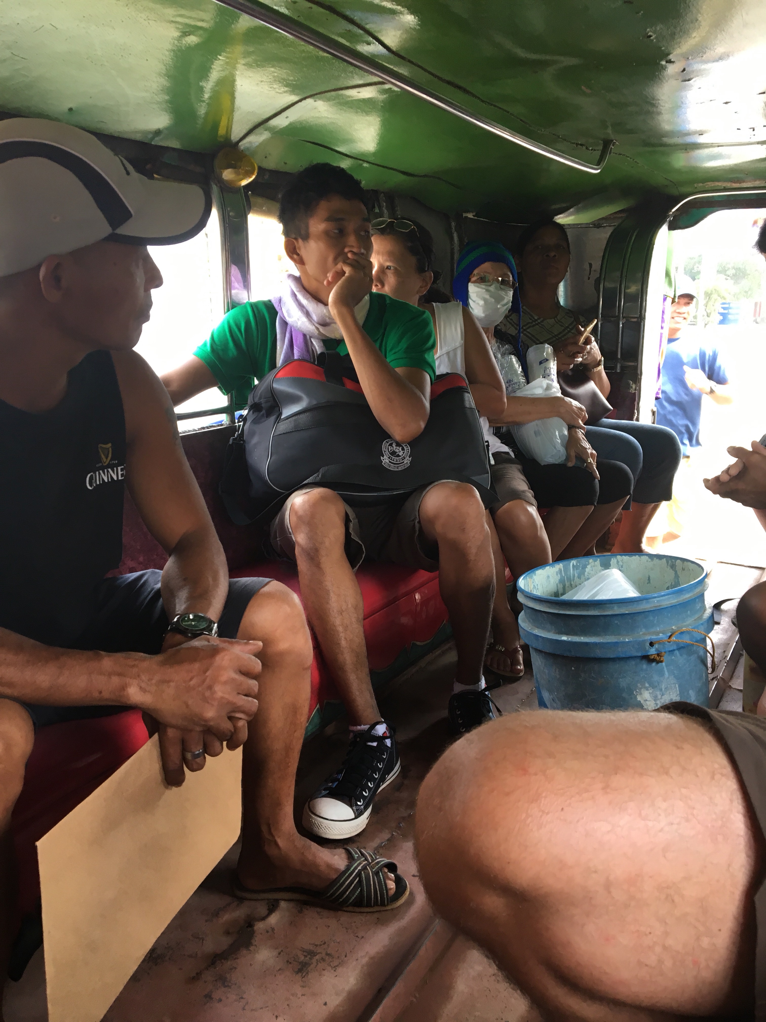 Prý je dobré vyrazit třeba kolem sedmé ráno, ale to se ještě válíme v posteli, dnešní odjezd nehrotíme. 😇 Takže teprve v 9:15 začínáme chytat jeepney na „dálnici“ směrem z města. Trvá to asi 20 min, je pravda, ze v sedm bychom čekali kratší dobu. 😁 Poprvé jsme taky navštívili místní obdobu Mekáče, fastfood Jollibee a posnídali palačinky plněné vejcem, sýrem a slaninou a docela dobré KAFE! … trochu hladové, ale fajn.