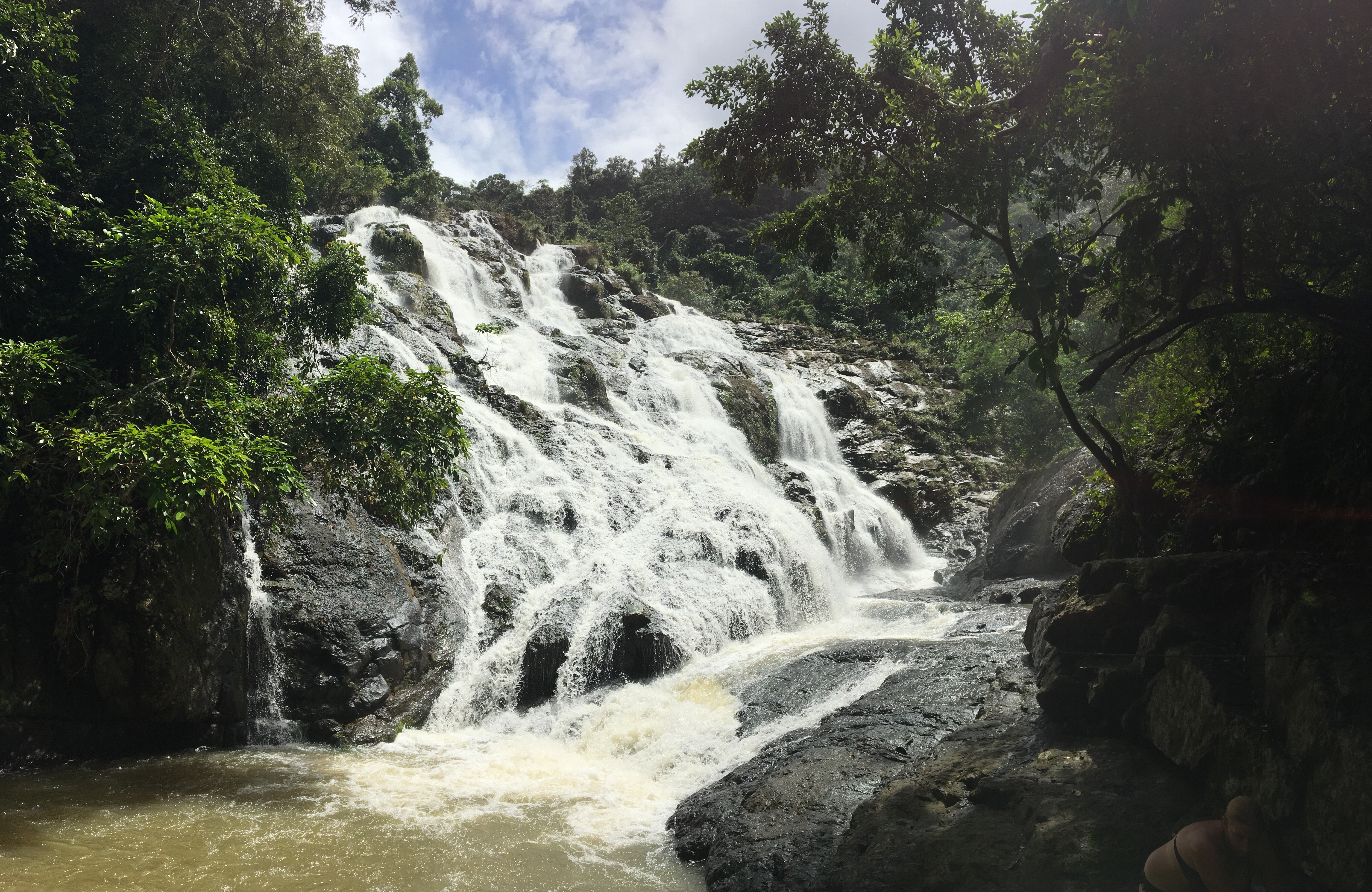 Po půlhodinovém kluzkém výšlapu můžeme obdivovat mohutnost a krásu Tarangban Falls. Je to naprostá nádhera. 👍 Koupeme se v laguně pod vodopádem a asi dvě hodinky se kocháme, fotíme a užíváme si. Občas sprchne, ale nějak jsme si už zvykli. Cestou zpět se zastavujeme ještě na původně opominutých Bangon Falls. Z dálky vypadaly malé nevýrazné, ale je to taky paráda. Jen počasí už se změnilo v konstantní déšť.