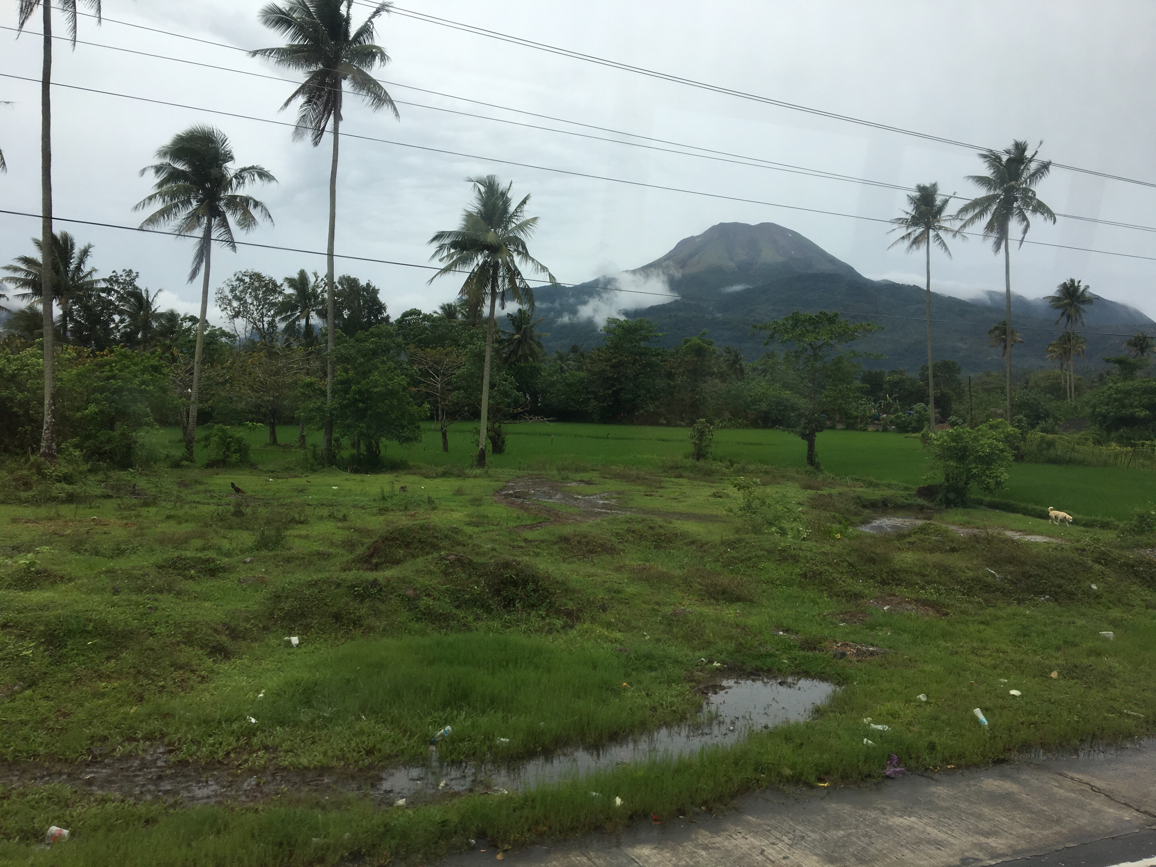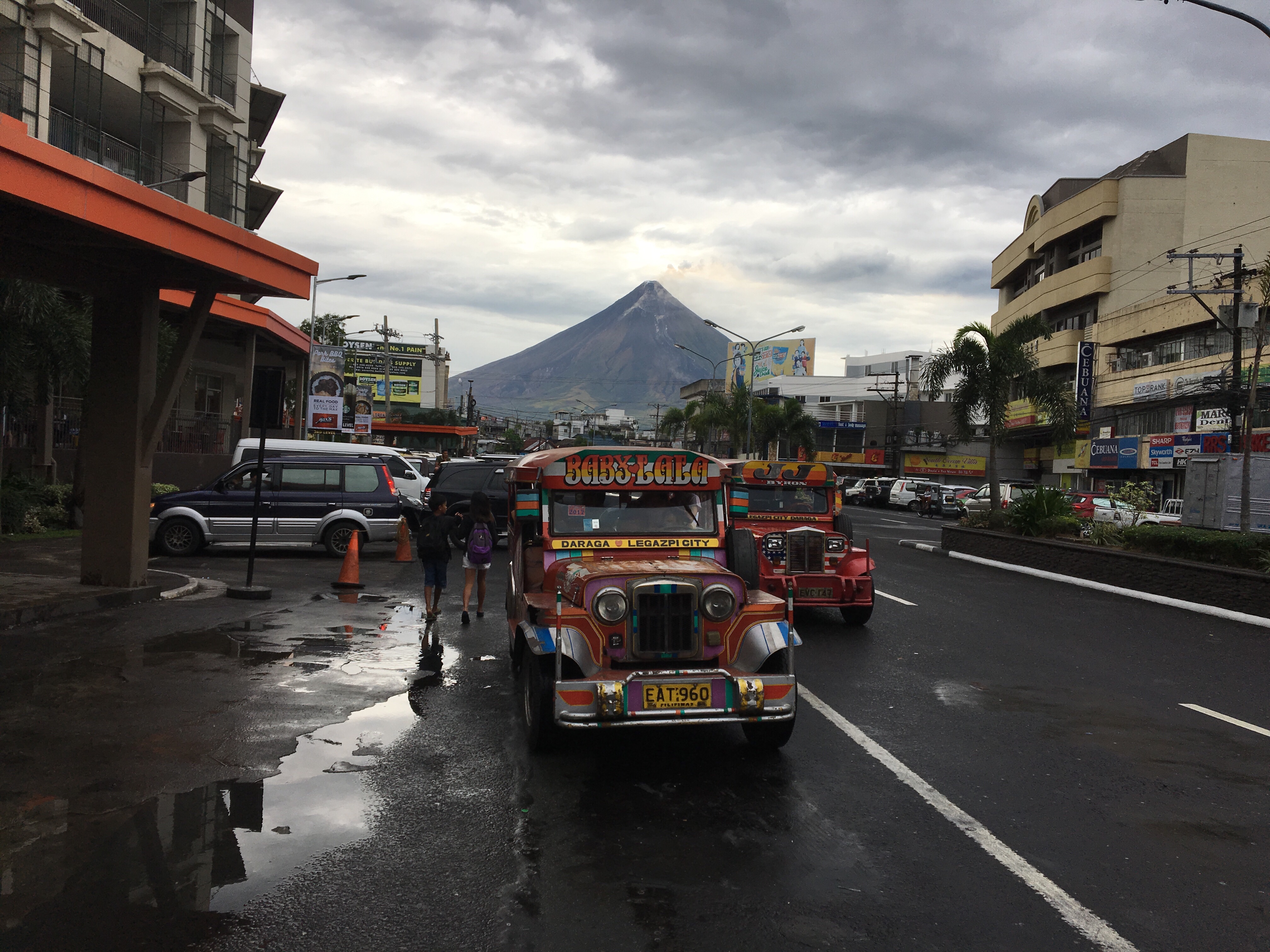 Po devíti a půlhodině dorážíme do města, které má údajně 600.000 obyvatel- vůbec byste to neřekli. Ubytování máme v krásném areálu s chatkami a výhledem na krásnou sopku Mayon.