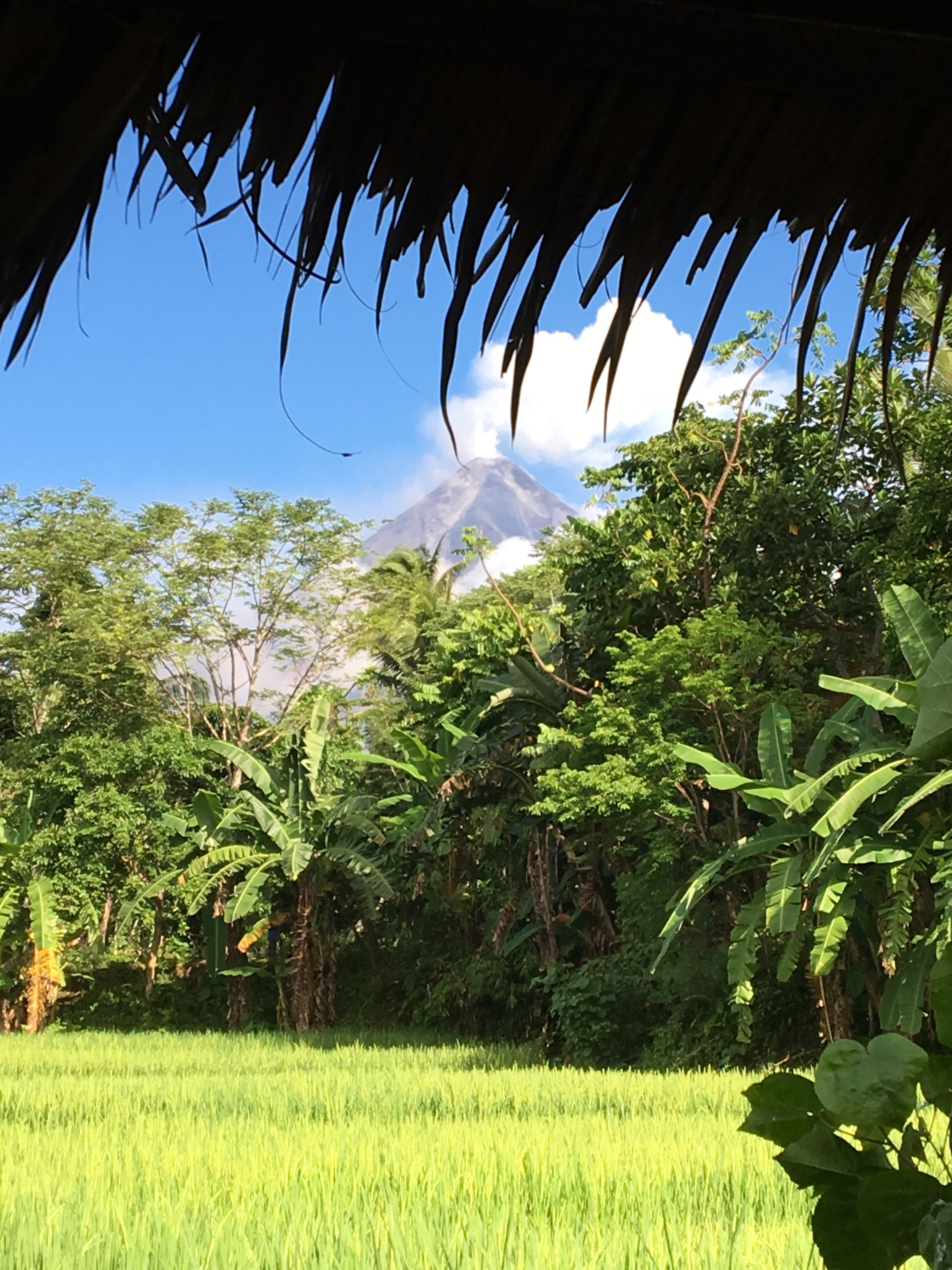 Vstávali jsme se sluníčkem do krásného dne a posnídali se sopkou v dohledu. Sbalili batoh a vyrazili hledat půjčovnu motorek. Bohužel jsme ji v tomto obrovském městě nenašli – nejsou zde na turisty zvyklí 😕