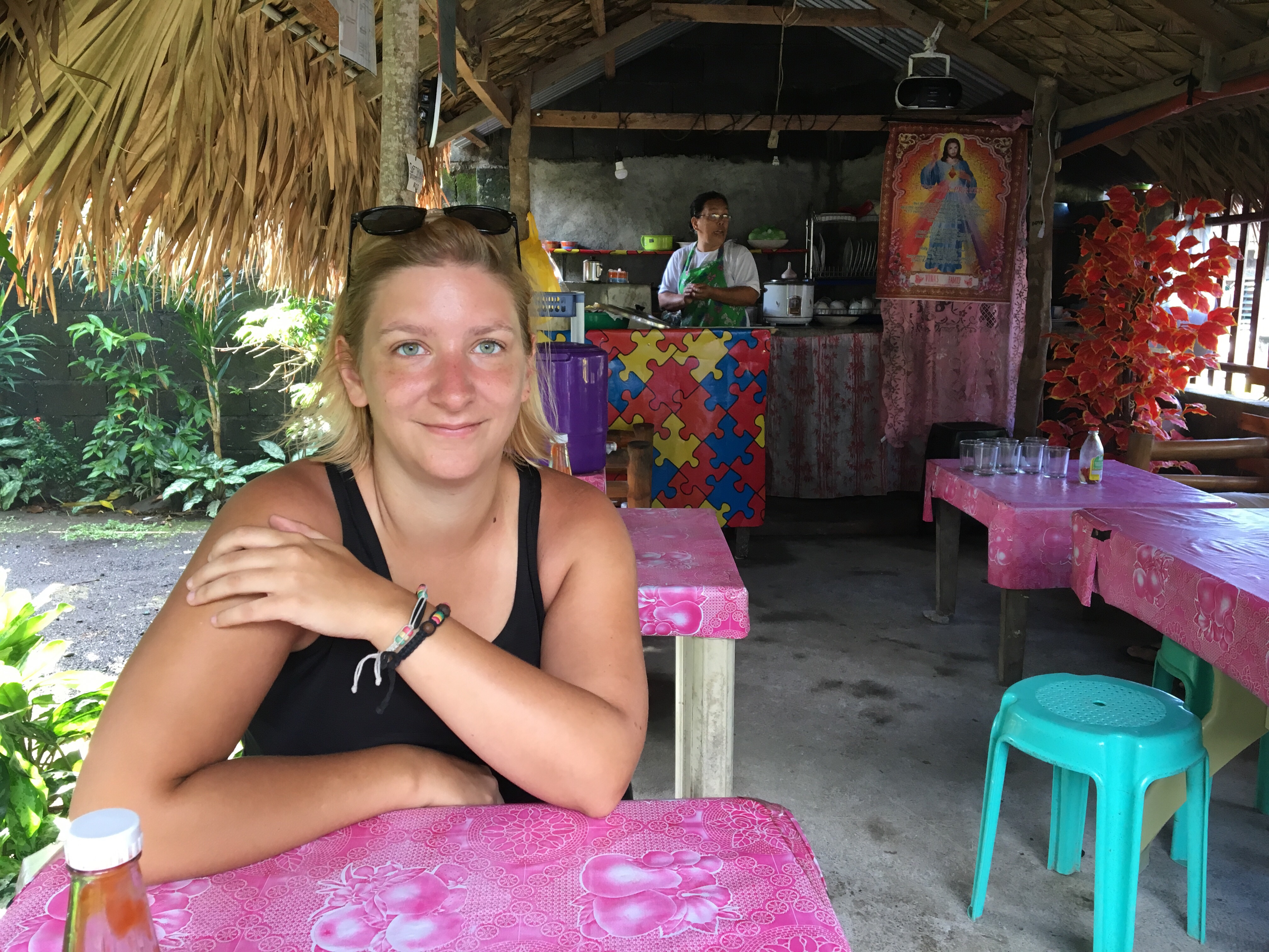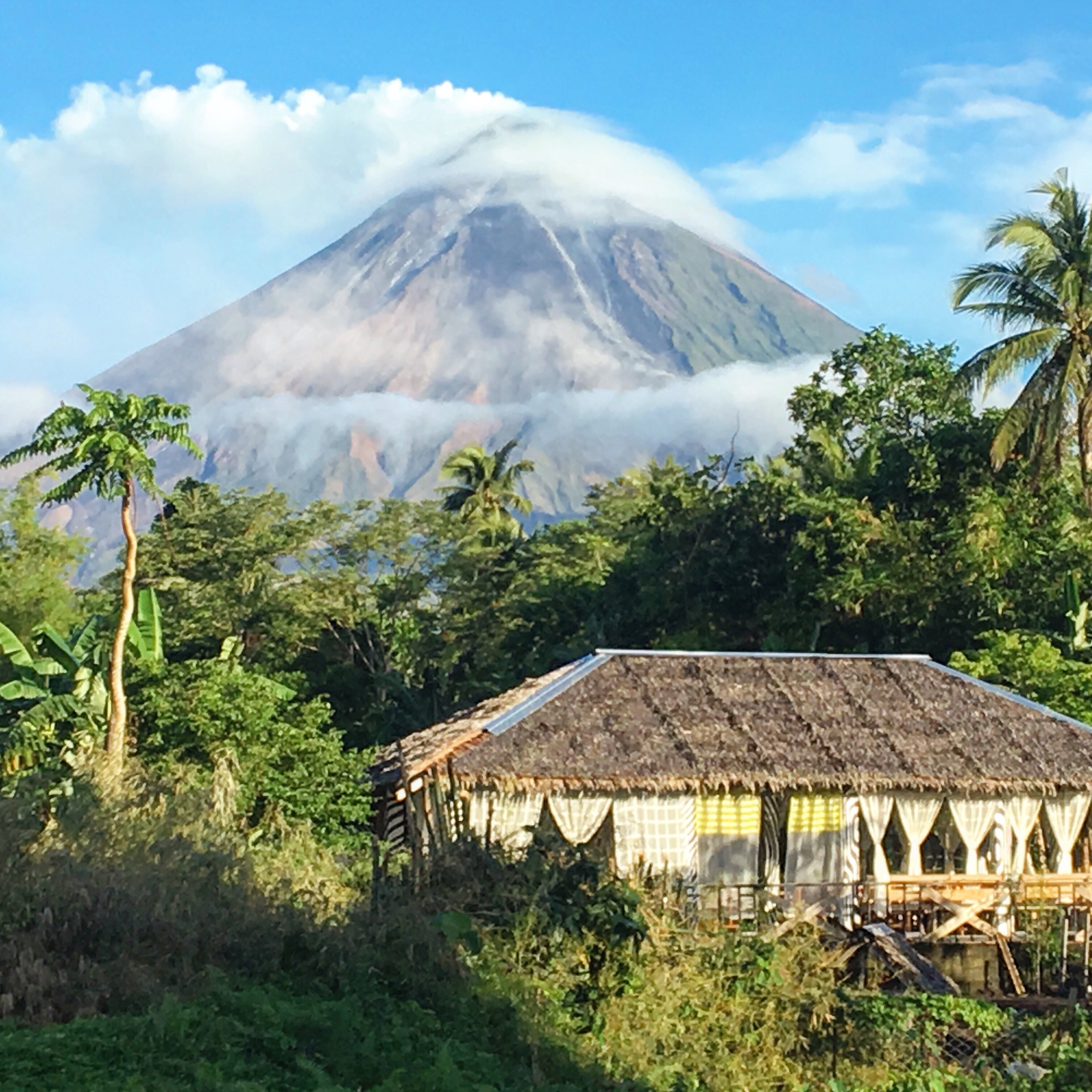 Po odevzdání motorky jsme čas do 13:00 proměnili v nicnedělání a odpočinek. Bylo krásně a pofukoval příjemný větřík, a tak jsme si užívali posledního pohledu na posvátnou sopku Mayon.