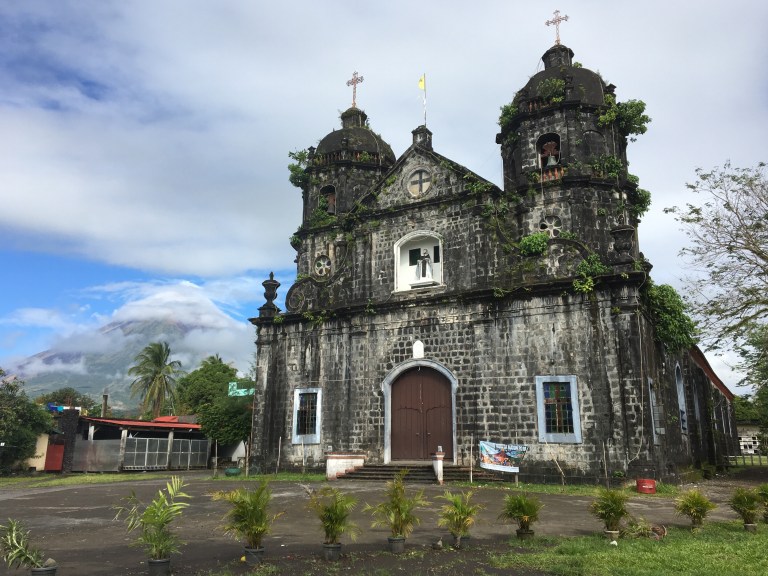 Toto městečko v Albayském zálivu s černým pískem na pláži s Filipínským mořem a sopkou Mayon v pozadí, je plné rezortů pro „mastňáky“, ale i tak jsme si tam místo na procházku a snídani udělali 😉