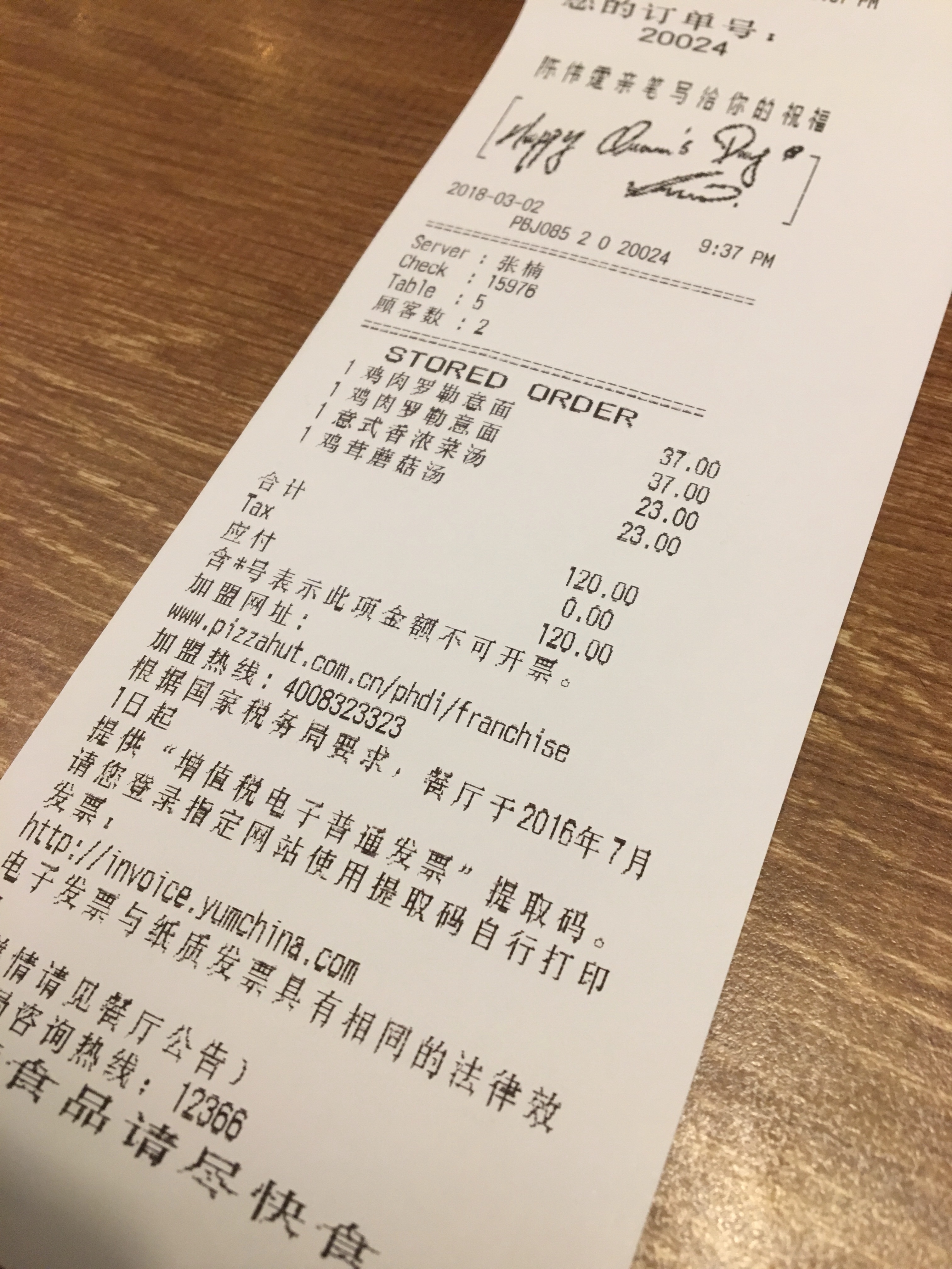 Účtenka za večeři 🤪