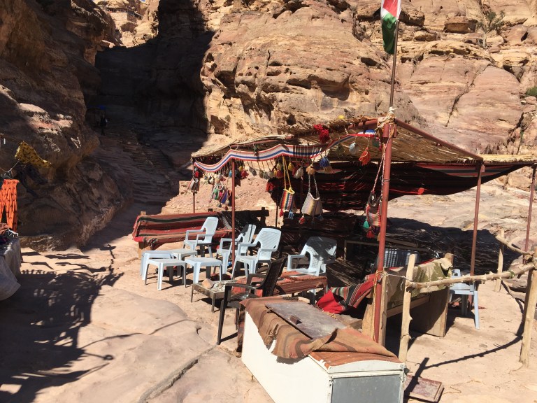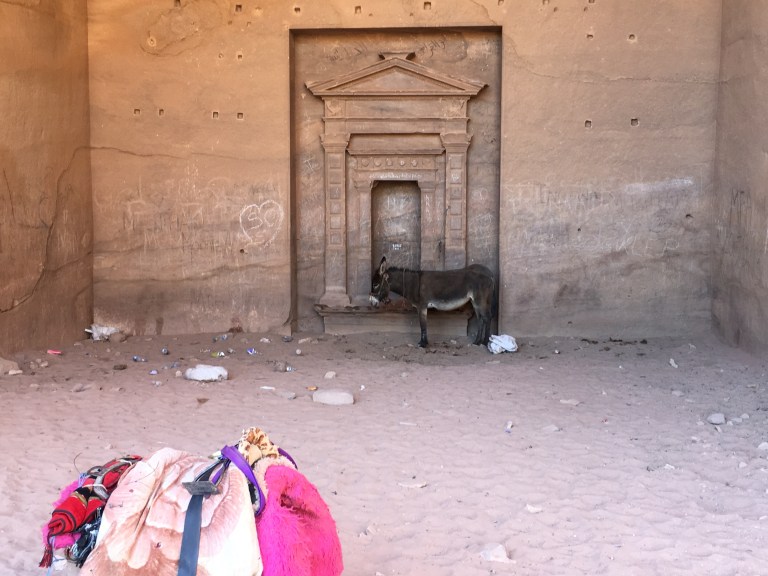 Cestou vás zastavují nahaněči, kteří by vás odvezli kamkoliv chcete, a to jak na oslu, koni či na dvoukoláku taženém koněm. Jsou docela neodbytní. V prostoru mezi nimi jsou další beduíni se stánky, kteří vám nabízejí své zboží (víceméně všude stejné).