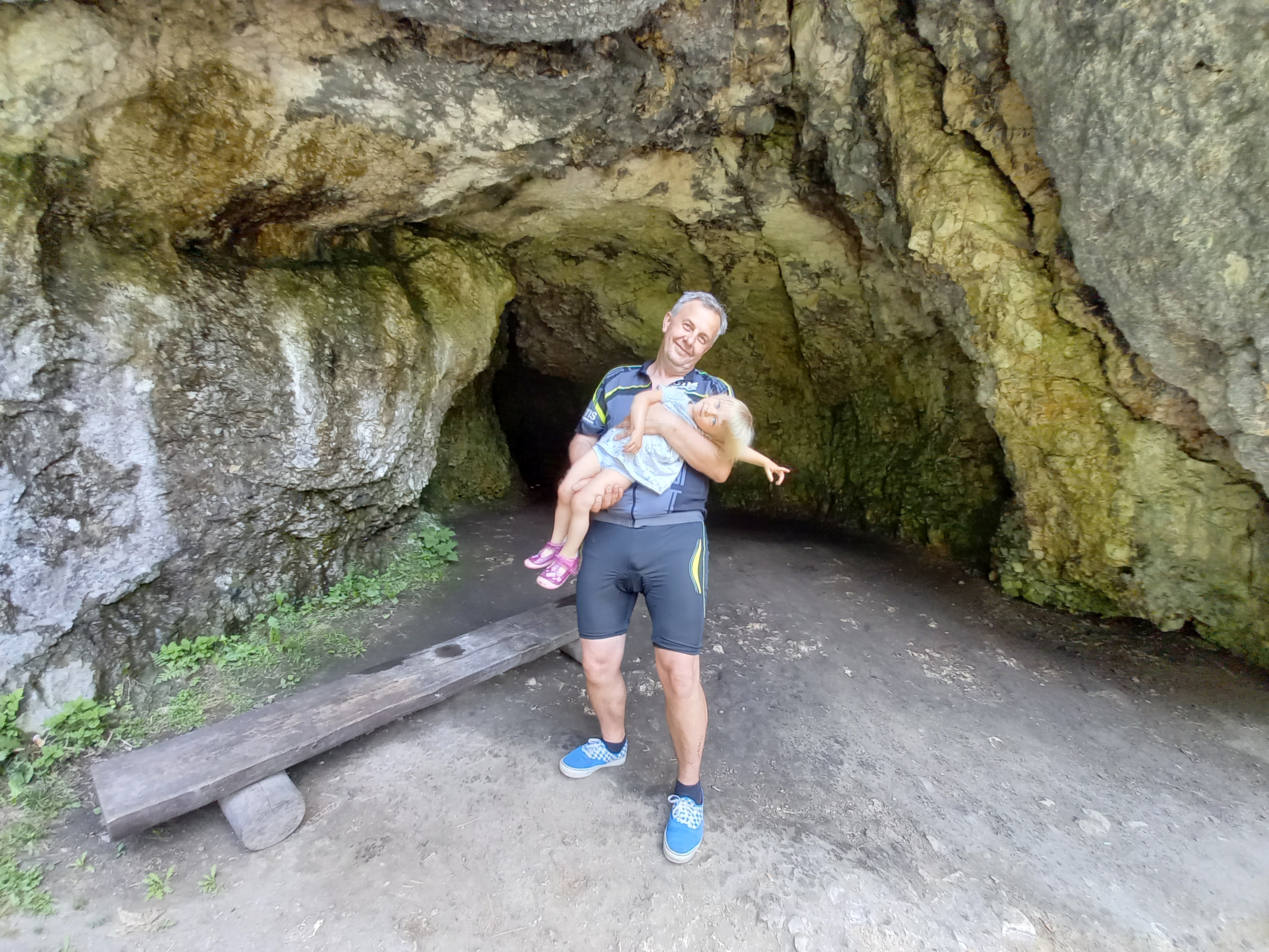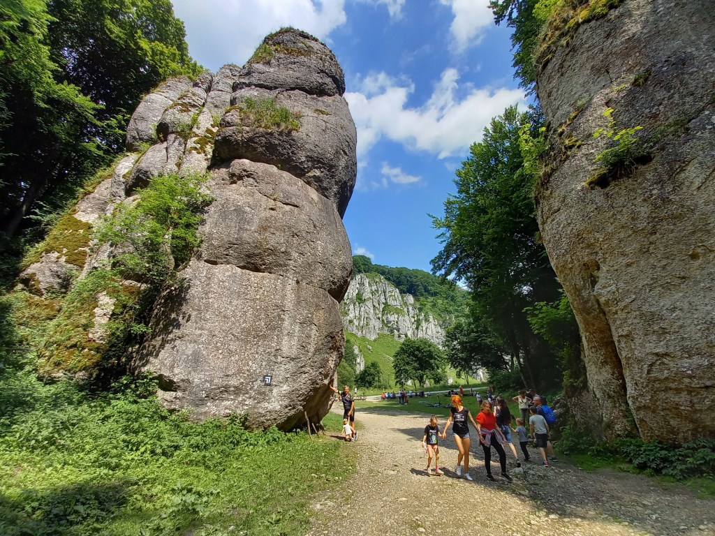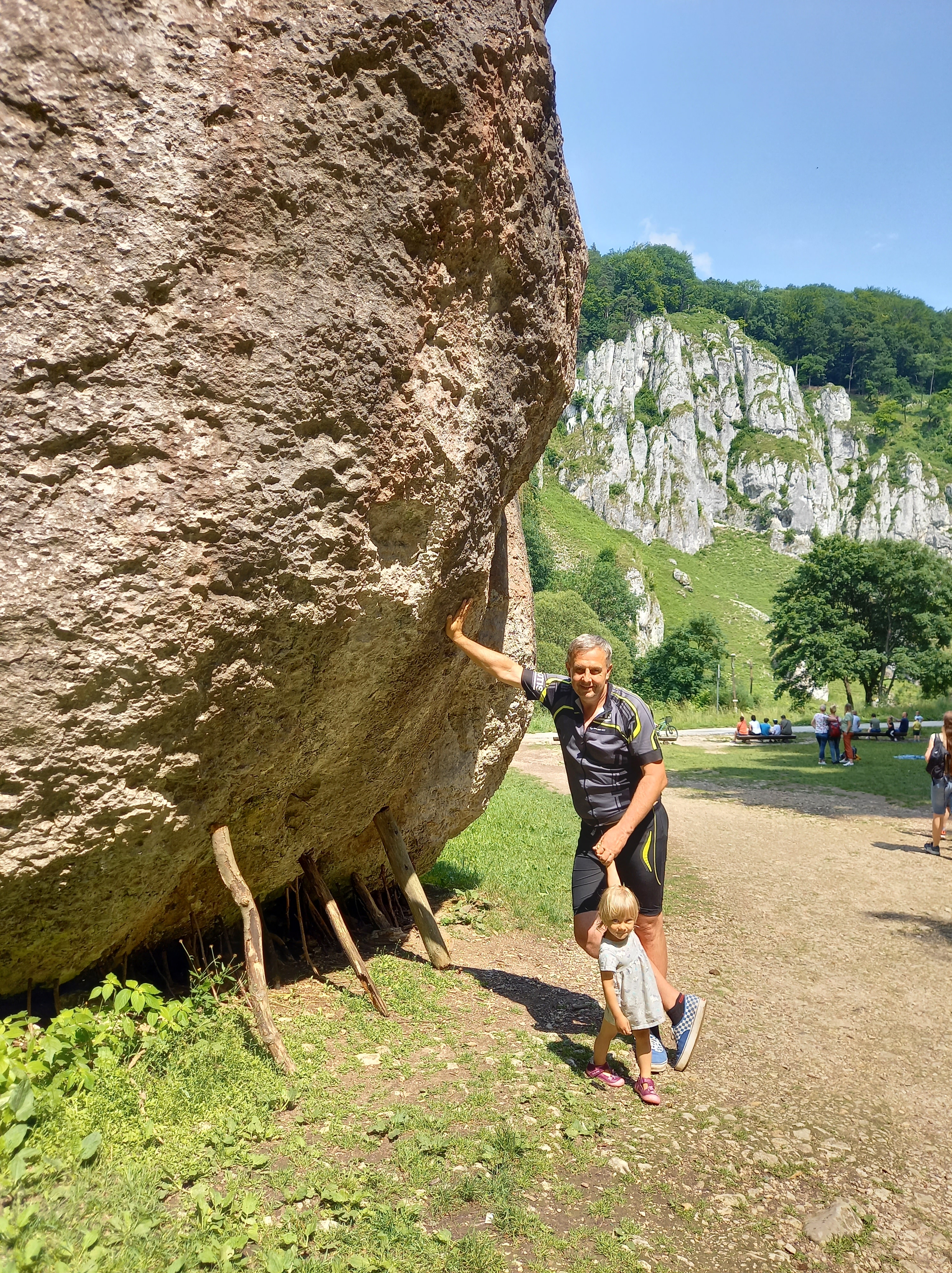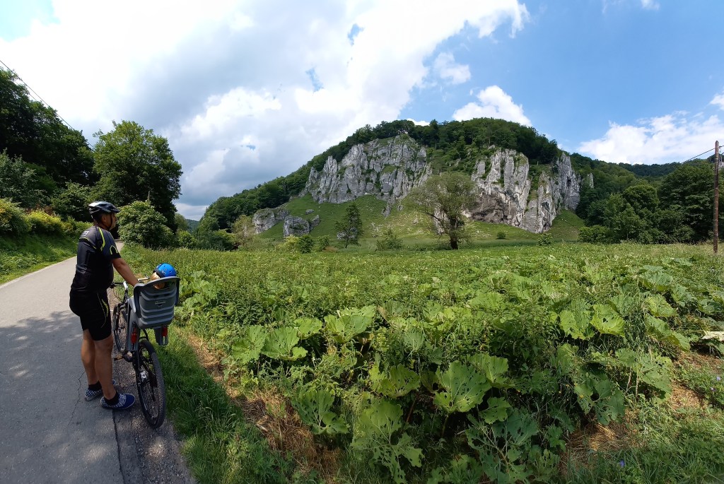 Zaparkovali jsme (8 PLN na hodinku), sundali kola ze střechy a vyjeli na průzkum. Podél klesající cesty se objevovaly menší či větší skalní útvary a v nich spousta jeskyní. Počasí nám přálo a protože byla neděle, bylo tam s námi tisíce Poláků 😀
