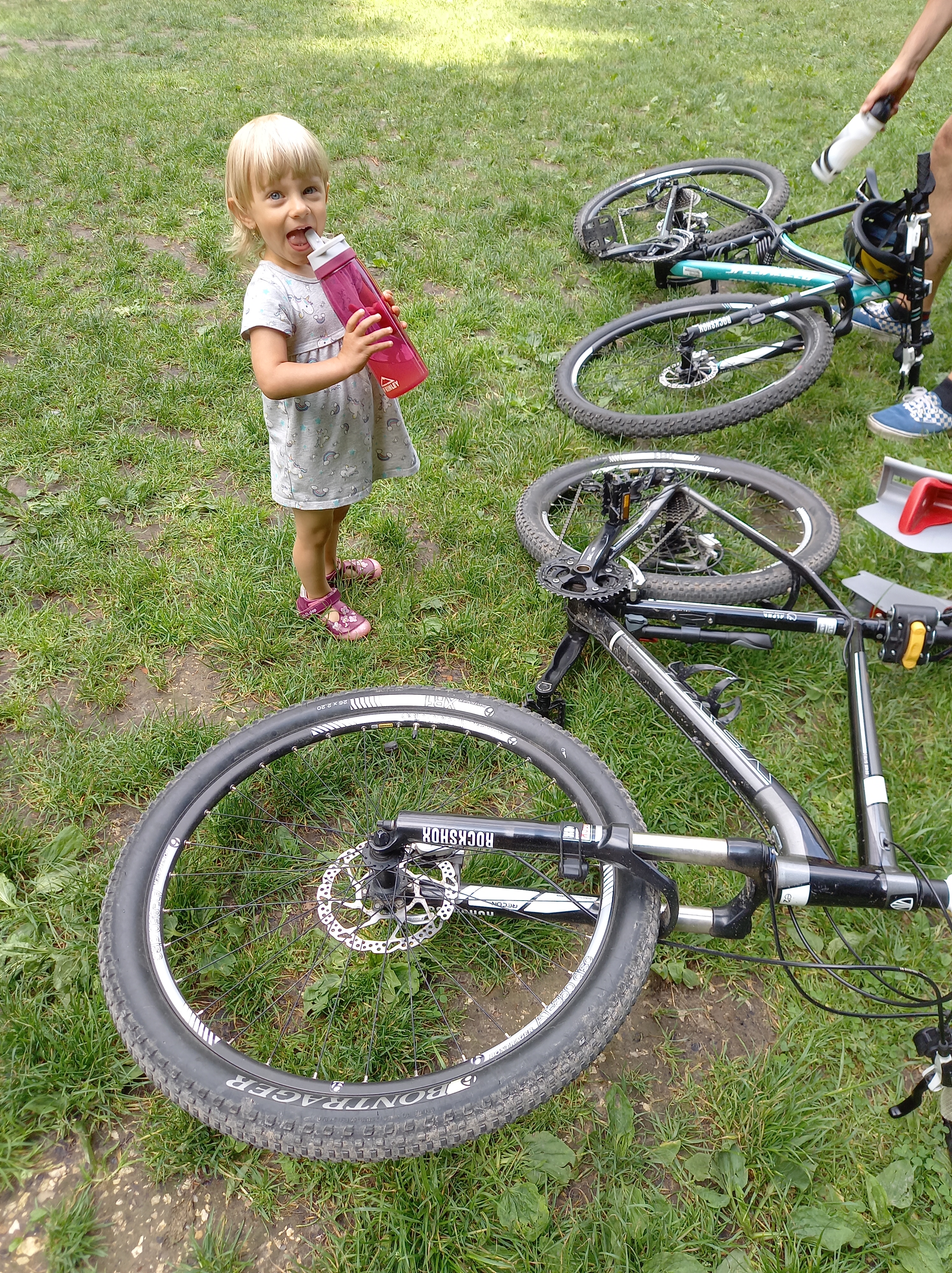 Akorát Terce cestou upadla šlapka z kola a musela šlapat jenom jednou nohou.😀 Program na další den je tedy jasný – najít cykloservis.