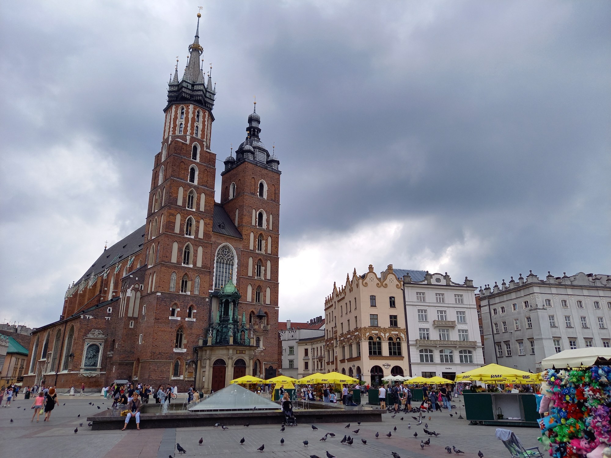 Obava z přeplněných kempů se zatím nepotvrdila, je tu s námi jen pár karavanů a malý stan. Rozkládáme svoje ležení a před desátou už jsme na cyklostezce vedoucí do Krakova. Na Rynek Glowny to máme asi 7 km podél řeky Wisly. Cestou zastavujeme pod Wavelem u sochy draka, kde prodávají stovky plyšových dráčků ostatně jako v celém Krakově.