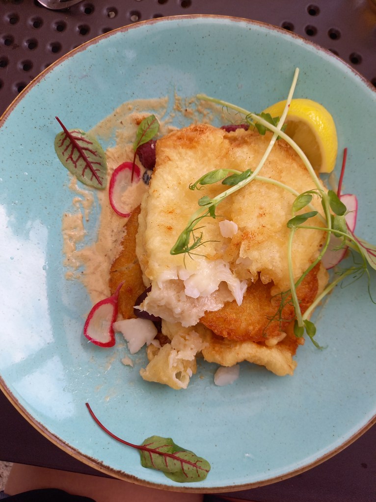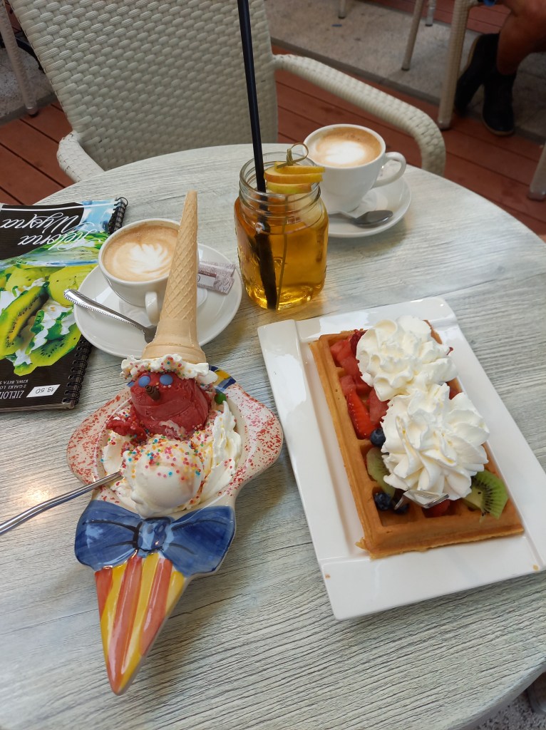 A když už jsme měli nocleh jistý, chtělo to ochutnat nějaké dary moře, což jsme dosud nestihli. Měli jsme výborný filet z tresky a mořský jazyk v restauraci Fishka-Fishka. Adi chroupala hranolky s kečupem, což je momentálně nejoblíbenější jídlo. Mezitím se vypršelo a mohli jsme se projít promenádou k moři. Mají tady vstupné na molo, což jsme tedy vynechali.😀 Radši jsme si dali kafe a dezert, když přišla další přeháňka.
