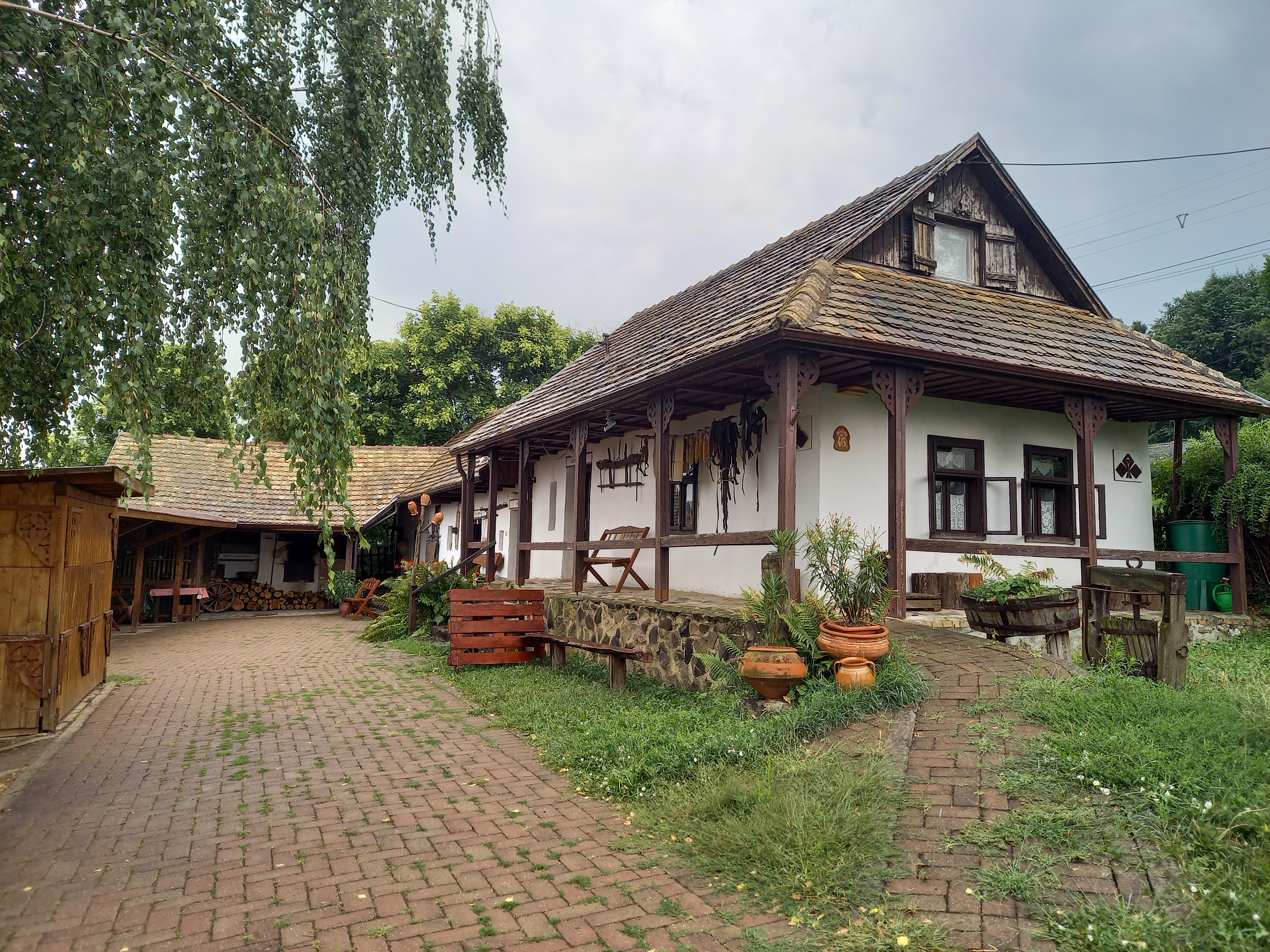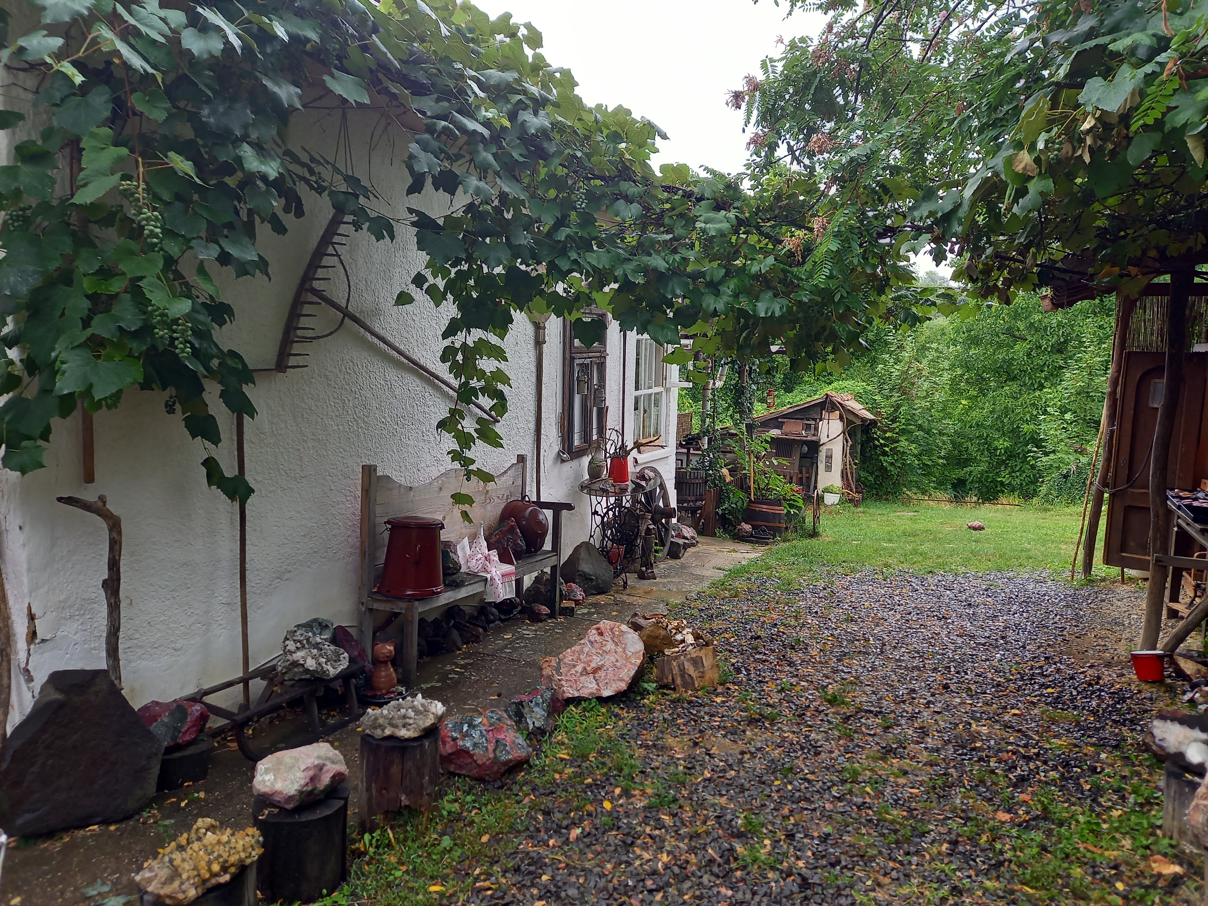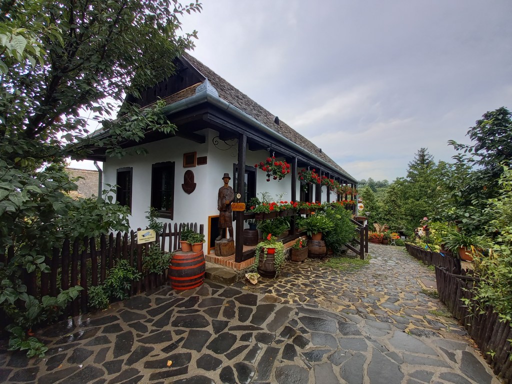 Přestože cestou na nás už pražilo sluníčko, nad Hollókö zase visel šedý mrak. Ale rozmary počasí k horám zkrátka patří. ANO, i Maďarsko má hory! Nevzdali jsme to a za doznívající bouřky se vypravili do historického centra vesnice. Míjeli jsme jedno krásné venkovské stavení za druhým, ozdobené různými smaltovanými a keramickými předměty a zemědělskými nástroji a všechny měly udržované zahrádky plné barevných květin.