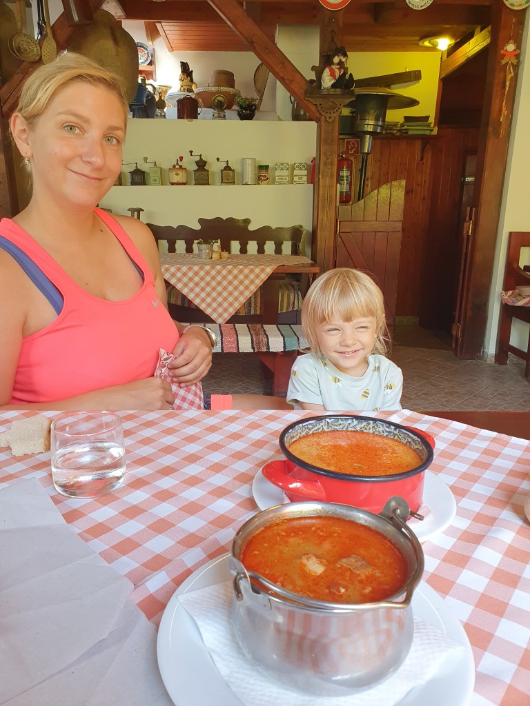 Museli jsme navštívit i místní restauraci, která kromě skvělého venkovského interiéru nabízela hlavně luxusní domácí stravu. Ochutnali jsme palóckou a fazolovou polévku a dušené hovězí se strapačkami. To, že jsme byli na památce UNESCO ani moc nepocítila naše peněženka. To je takový příjemný bonus cestování po Maďarsku. Ceny jsou tu většinou nižší než u nás.