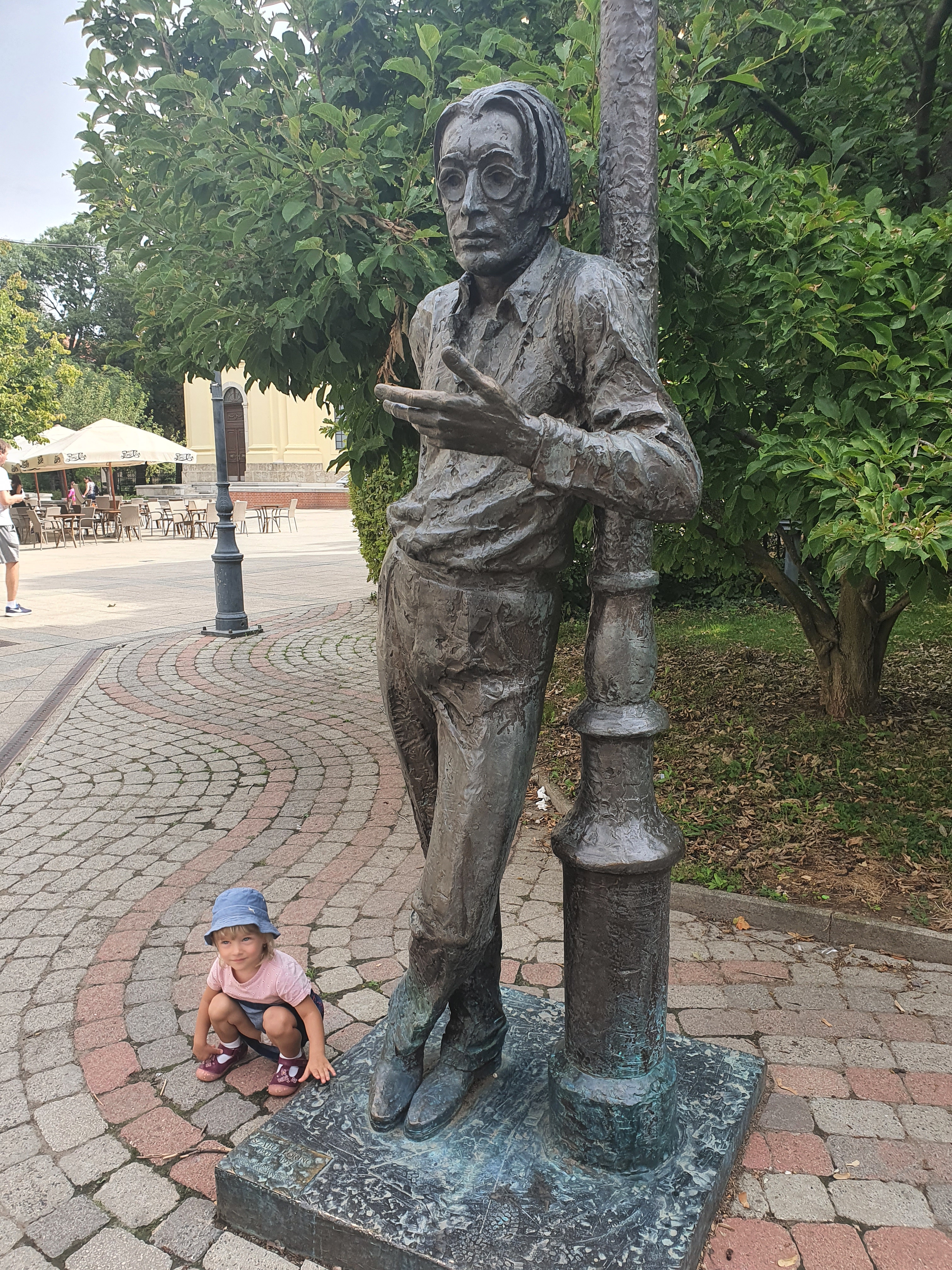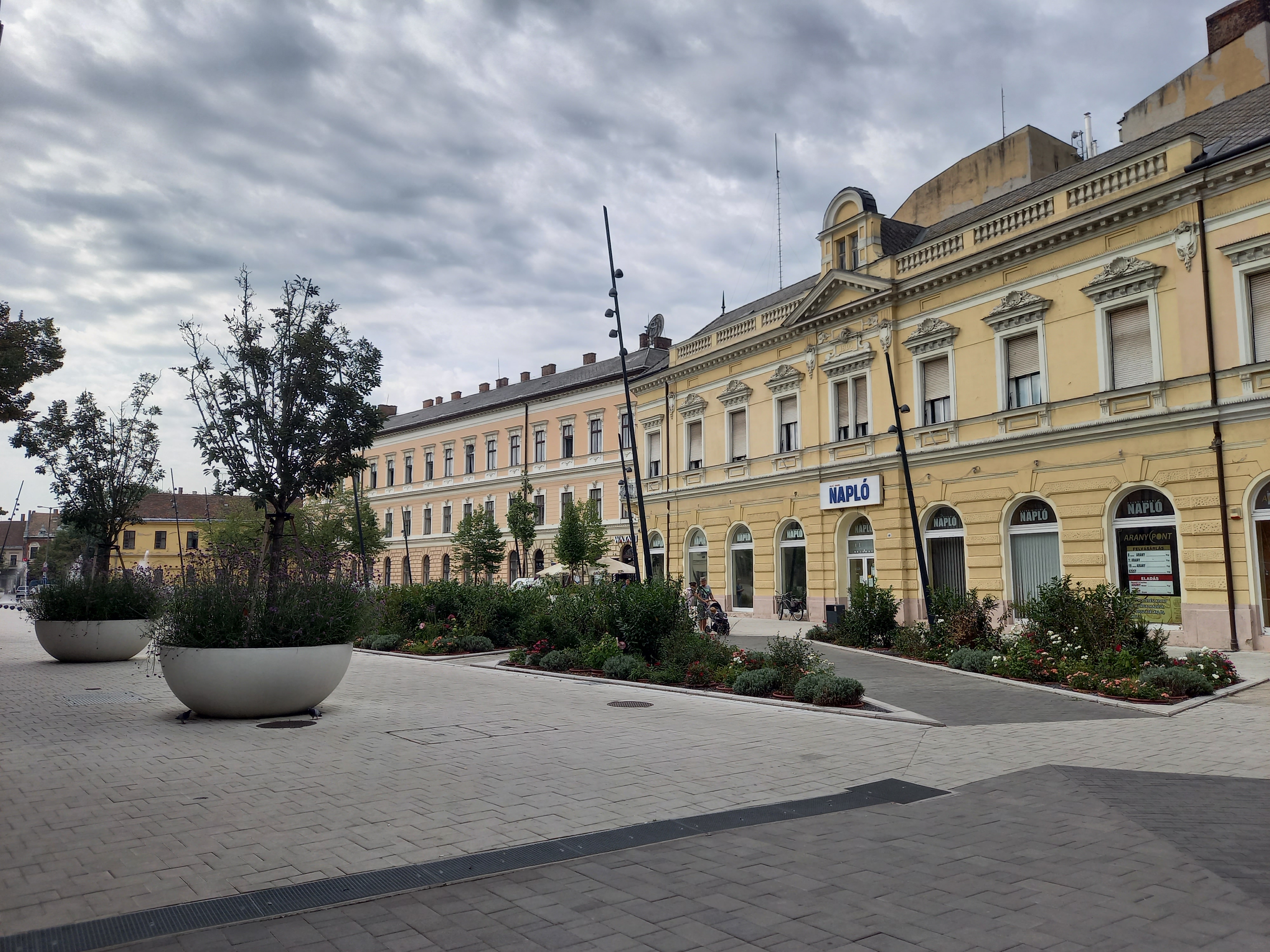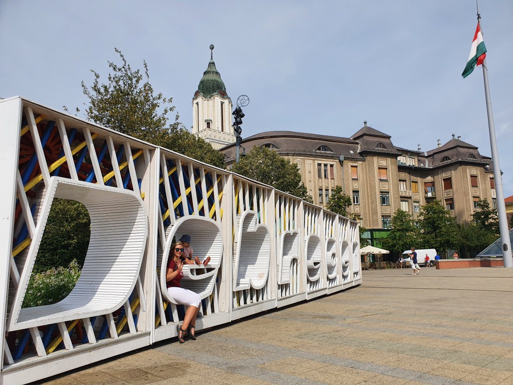 Zaparkovali jsme 2 km od centra, ale protože máme s sebou kola, je hračka se tam dostat. Kola do města se nám opět osvědčila, s Adinkou toho tak aspoň víc stihneme. V Debrecínu mají síť cyklostezek, kde se nemusíte proplétat mezi auty, cyklistům je vyhrazen kus chodníku, což je super. Prohlédli jsme si hlavní náměstí s kostelem a prošli si pár příjemných bočních uliček plných zeleně. Centrum, zdá se, prošlo nedávnou podařenou revitalizací. Ještě jsme zapluli na velký zastřešený trh se samými dobrotami.
