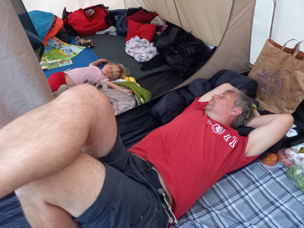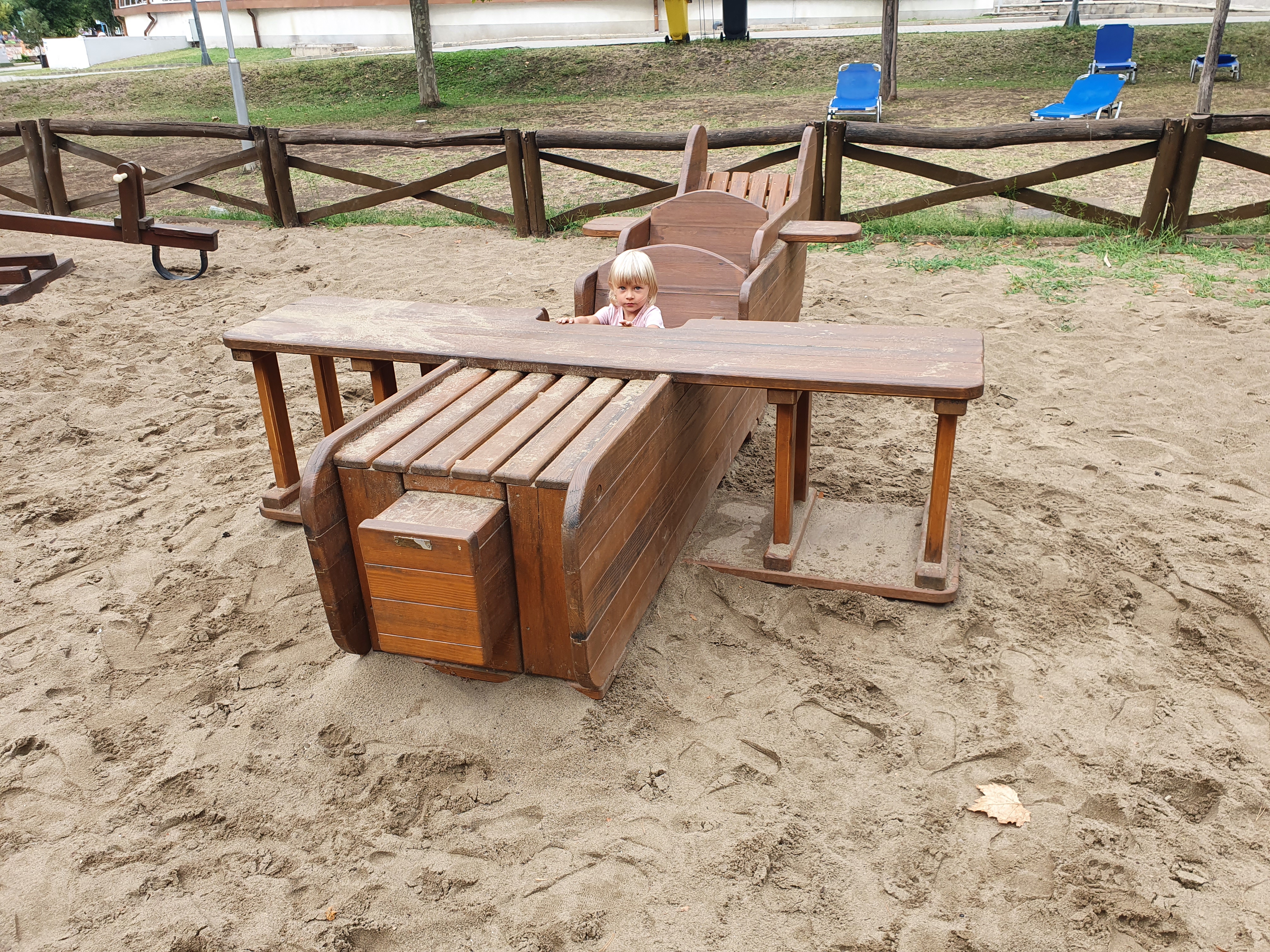 Aspoň jsme tu ochutnali výborný telecí paprikáš a plněné zelné listy. A kde jinde si koupit debrecínské párky než tady? Máme večeři i na zítra! Adinku výlet zmohl, takže cestou do kempu odpadla a vypadá to, že bude spát až do rána. Venku pořád fouká, tak se ani nám nic nechce.