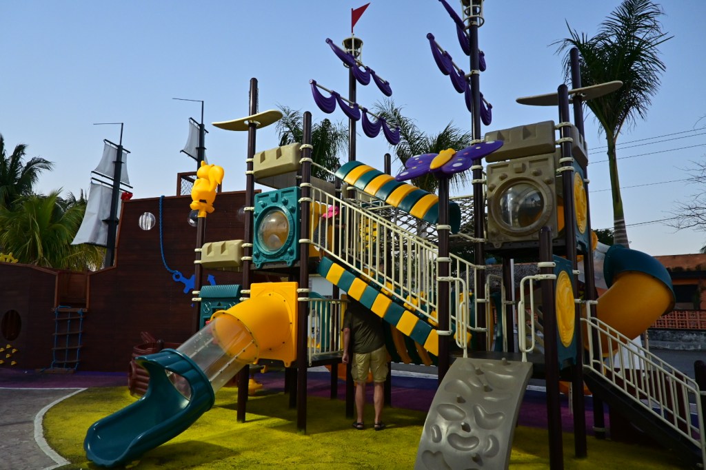 Po odpočinku na pokoji jsme opět vyrazili na promenádu v Sabancuy. Tady je překvapivá koncentrace dětských hřišť a všechny ve tvaru pirátské lodi. Adinka se vyřádila a my si dali u toho konečně pořádné espresso z mašiny, což je tady velký úkaz.