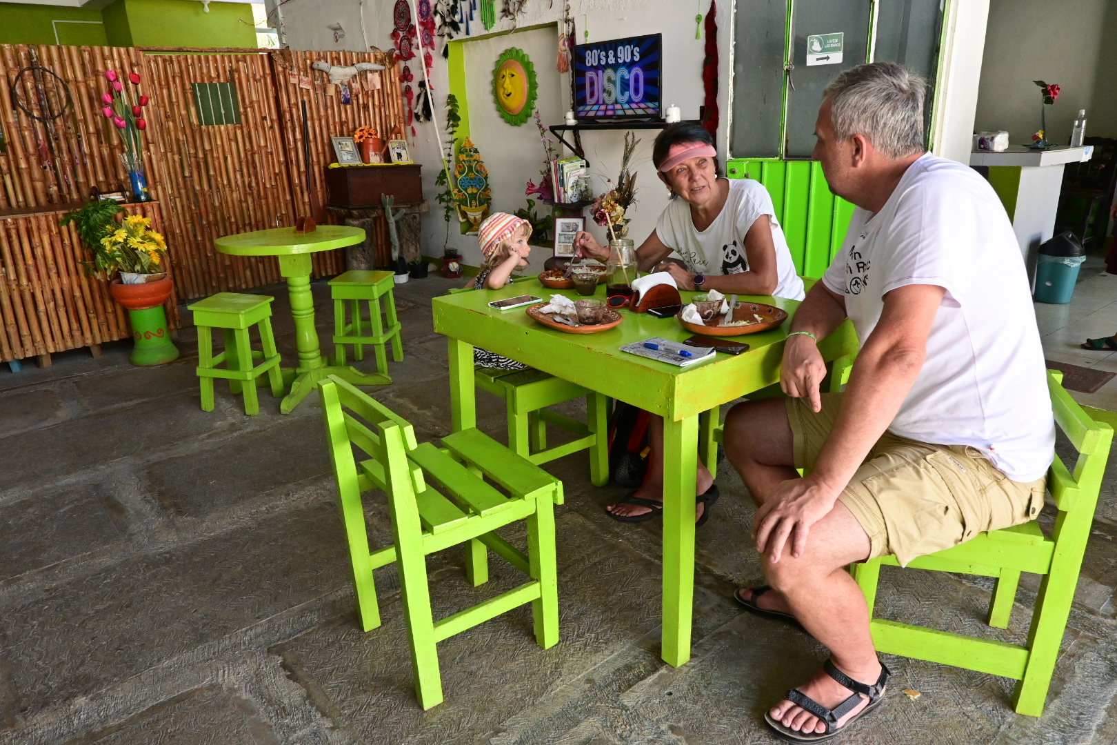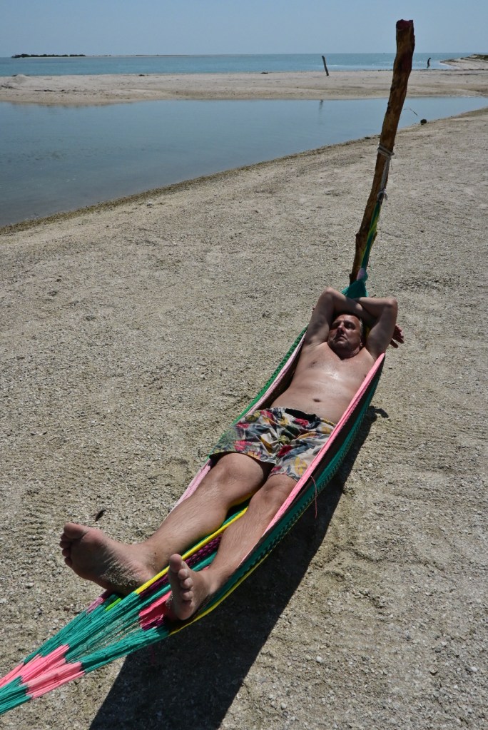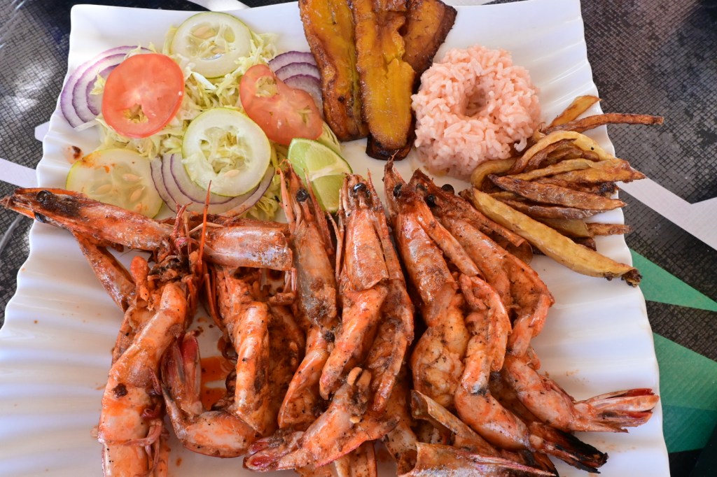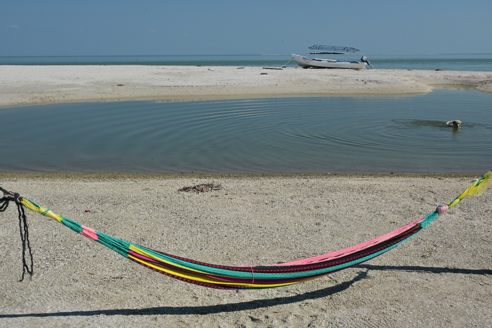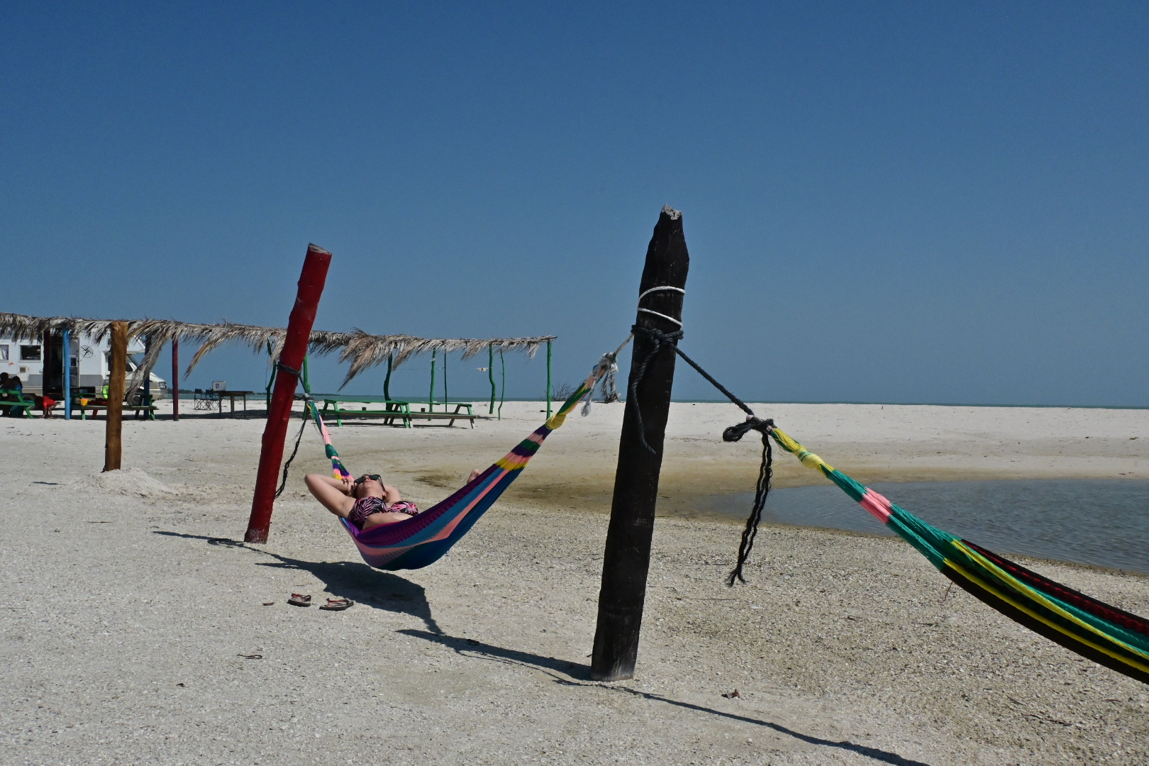 Užívali jsme si houpací sítě, osvěžující moře, pozorování krabů poustevníků a delfíních hřbetů v dálce. Podmínkou setrvání na této pláži bylo dát si něco k jídlu. To pro nás nebývá problém. Objednali jsme si doslova hostinu složenou ze smažené ryby, krevetového vývaru a obřích krevet samotných. Tak velké krevety jsme ještě nikdy neměli! Zůstali jsme, dokud nás nezačaly požírat miniaturní mušky.