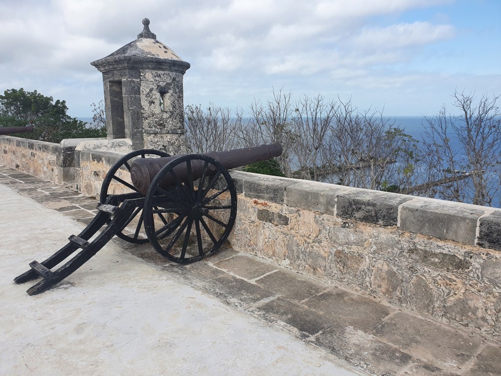 Hned na začátku města jsme si udělali zastávku u pevnosti San Miguel, kde jsme navštívili i Mayské museum s dokonale zachovalými artefakty. Pevnost má padací most a v příkopě zde chovají hezkých pár kousků leguánů 👍