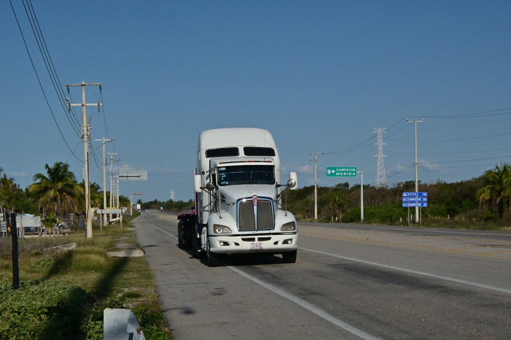 Posnídáme sýrové empanadas, kafe a vyrážíme do hlavního města stejnojmenného státu Campeche. Cesta kolem divokého pobřeží mexického zálivu byla v pohodě. Už jsme si zvykli na ty jejich dlouhé rovné prázdné silnice, kde většinou potkáte jen obrovské supertrucky s velkým nákladem. Taky je tady už kousek placené dálnice – asi za 30 km zaplatíte 80 pesos.