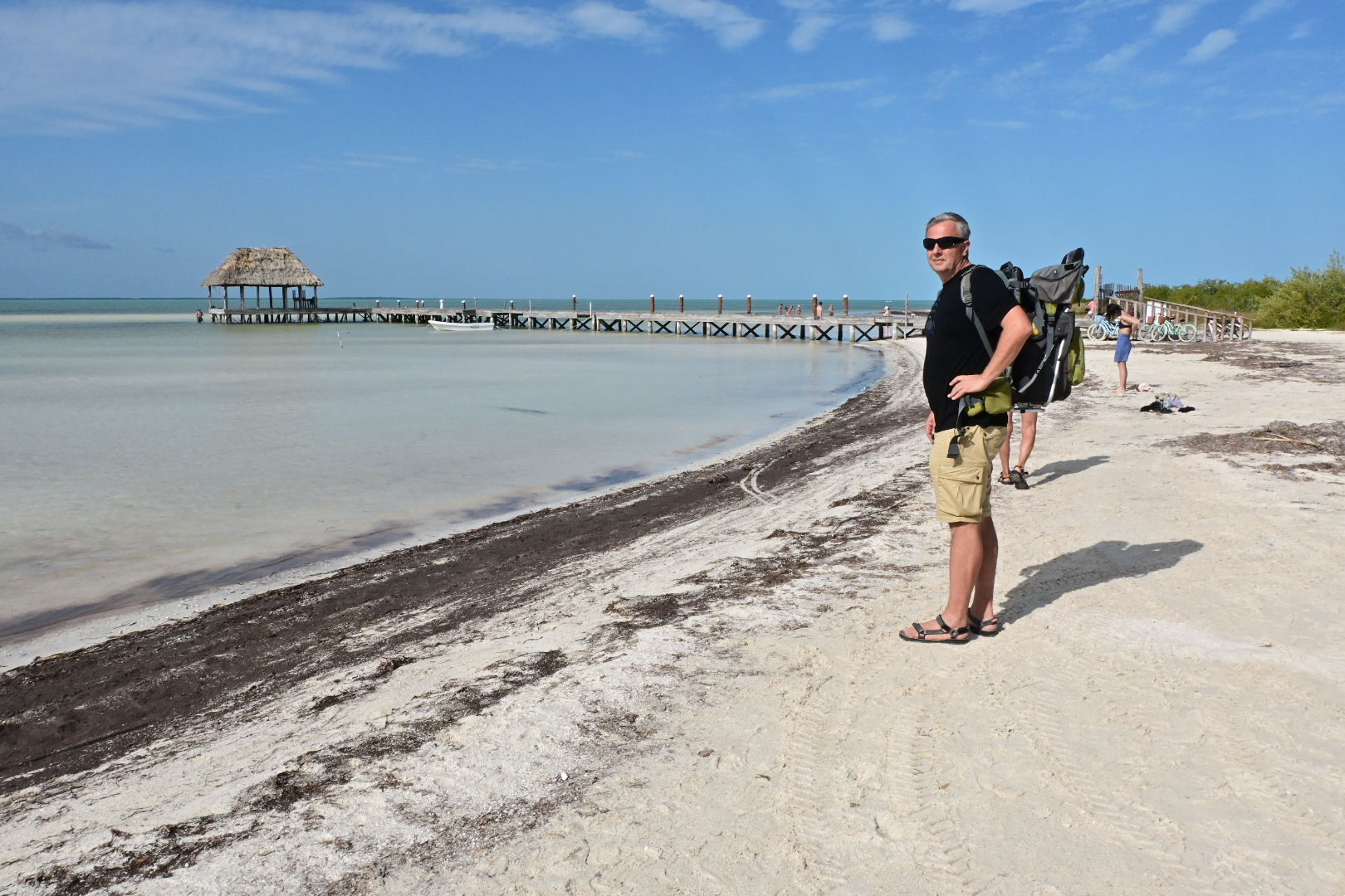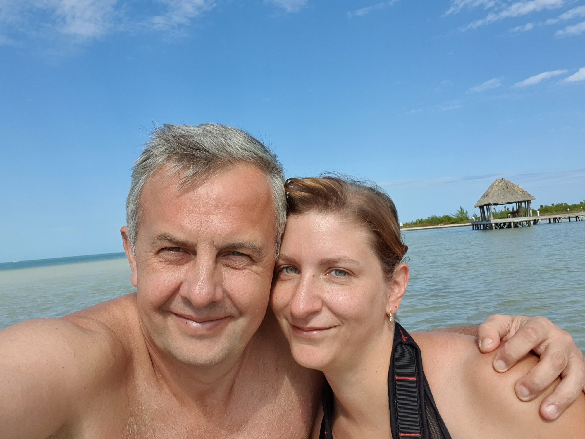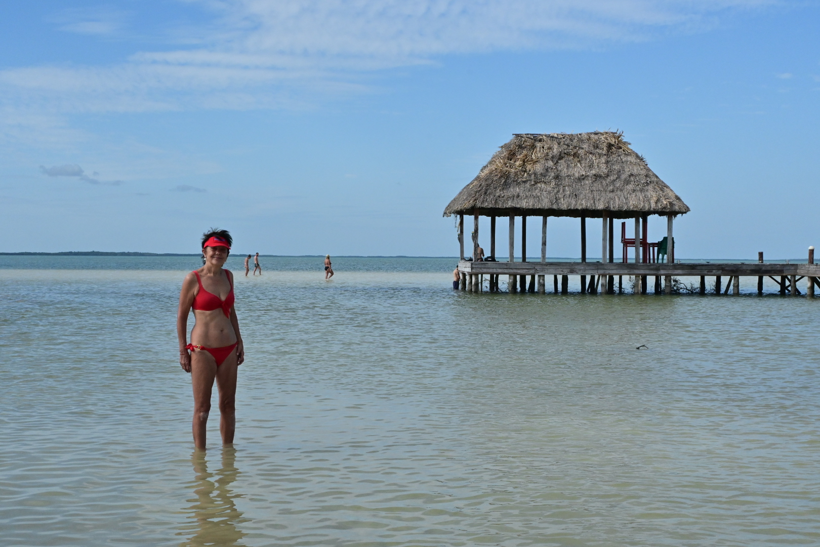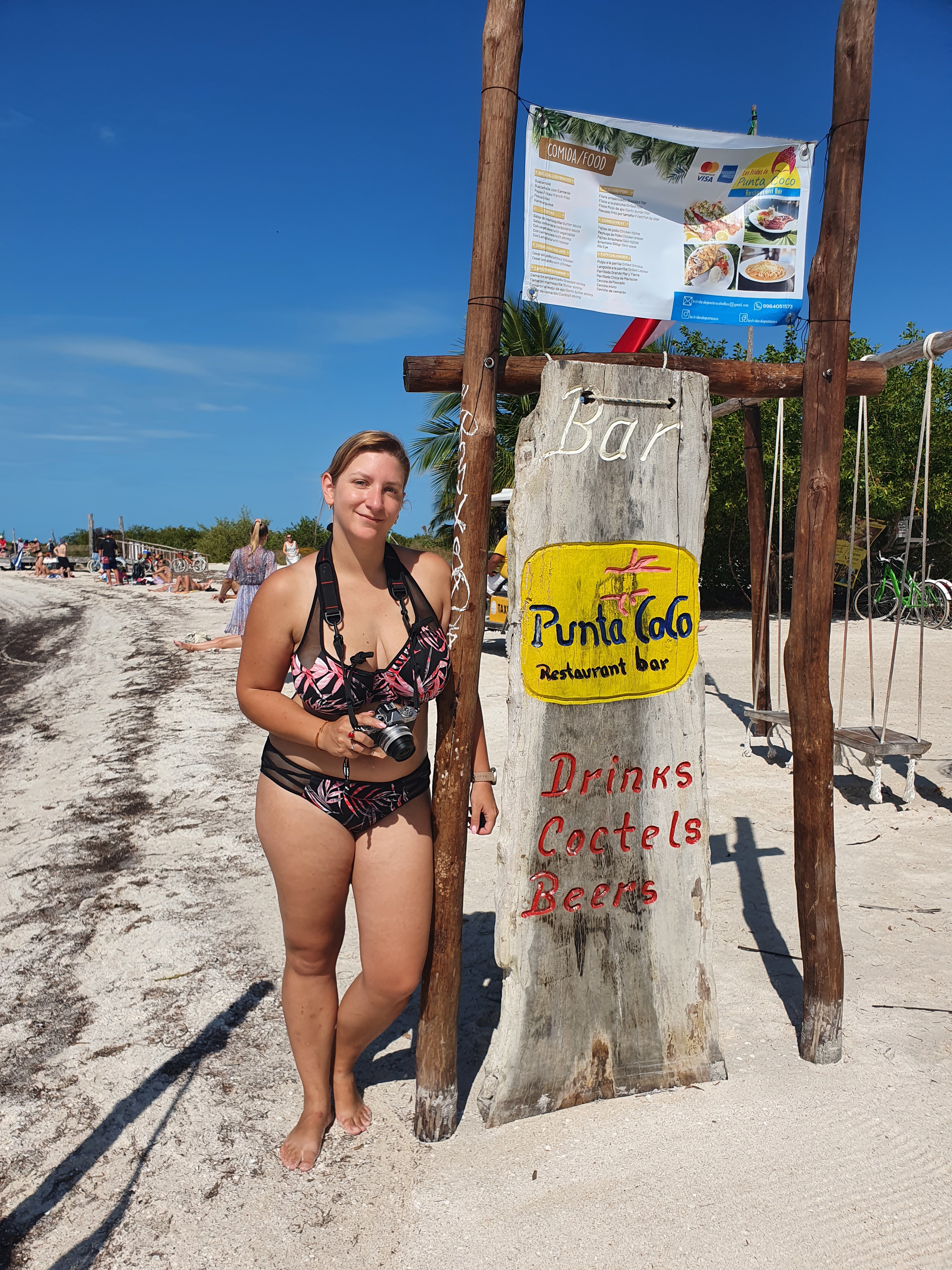 Pak chytáme taxi golfový vozík na 2 km vzdálený cíp Punta Coco, který sousedí s ptačí rezervací, takže je to taková oáza klidu oproti pláži ve městě. Hlavně je čistá, bez řasy. Vody je tu všude po kolena, ale vůbec nám to nevadí. Písek je tu tak jemný, že se z něj ve vodě stává mazlavé blátíčko. A dá se s ním “koulovat”. 😝 Poslední den už jenom akumulujeme teplo, chytáme bronz, odpočíváme a pijeme drinky.