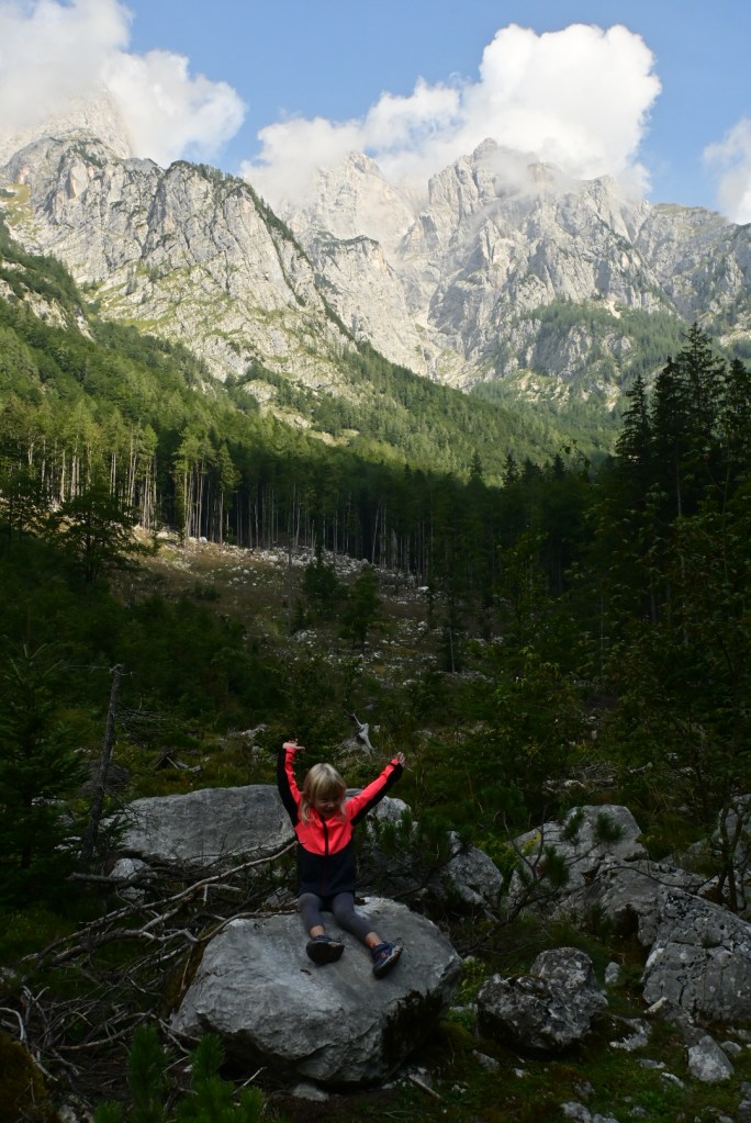 Jak jsme si včera předsevzali, tak jsme i zrealizovali. Vzhledem k ubytování přímo naproti dolině Vrata, která je výchozištěm pro jednu z tras na Triglav, nejvyšší horu Slovinska, jsme se přesně tam ráno vypravili. Dojeli jsme až na nejzazší parkoviště nedaleko chaty Aljažev dom a jako cíl si vytyčili pramen Triglavské Bistrice, který se nachází po 3 kilometrech a 200 výškových metrech nástupní trasy na samotný Triglav.