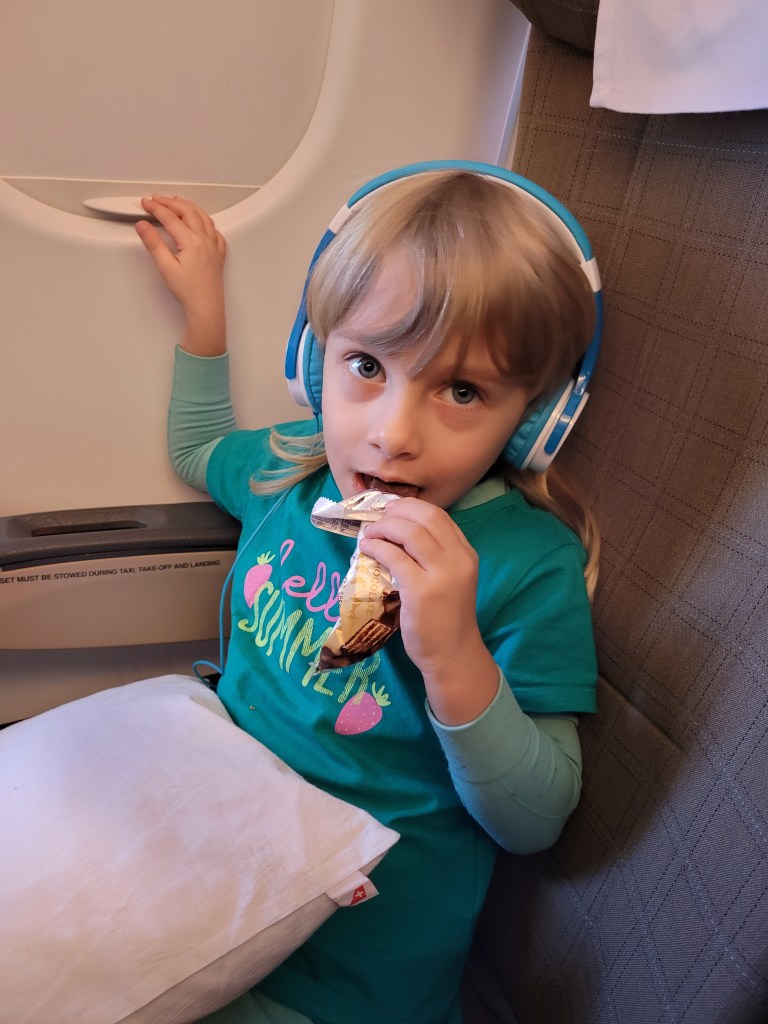 Obávaná devítihodinová cesta je nakonec taky velmi příjemná. Přísun švýcarských delikates je neustávající. Kde dostanete k svačině zmrzlinu Mövenpick, sýr Gruyére nebo tabulku čokolády? Malí cestovatelé tady dostávají jídlo jako první z letadla, což je moudré a strategické.