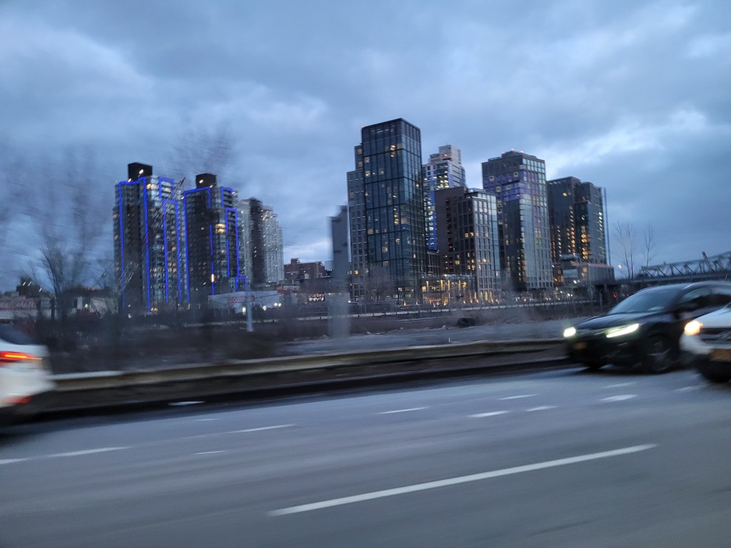 A vzhůru do odpolední newyorské špičky! Potřebujeme se dostat přes celé město z východu na západ a není to žádný med. Z původních +7 °C se záhadně stalo -16 a k tomu přišla sněhová vánice. Možná jste o tom četli i v českých novinách.😆 Dost podezíráme půjčovnu, že nás vybavili letními pneu. Dívat se radši nechceme.