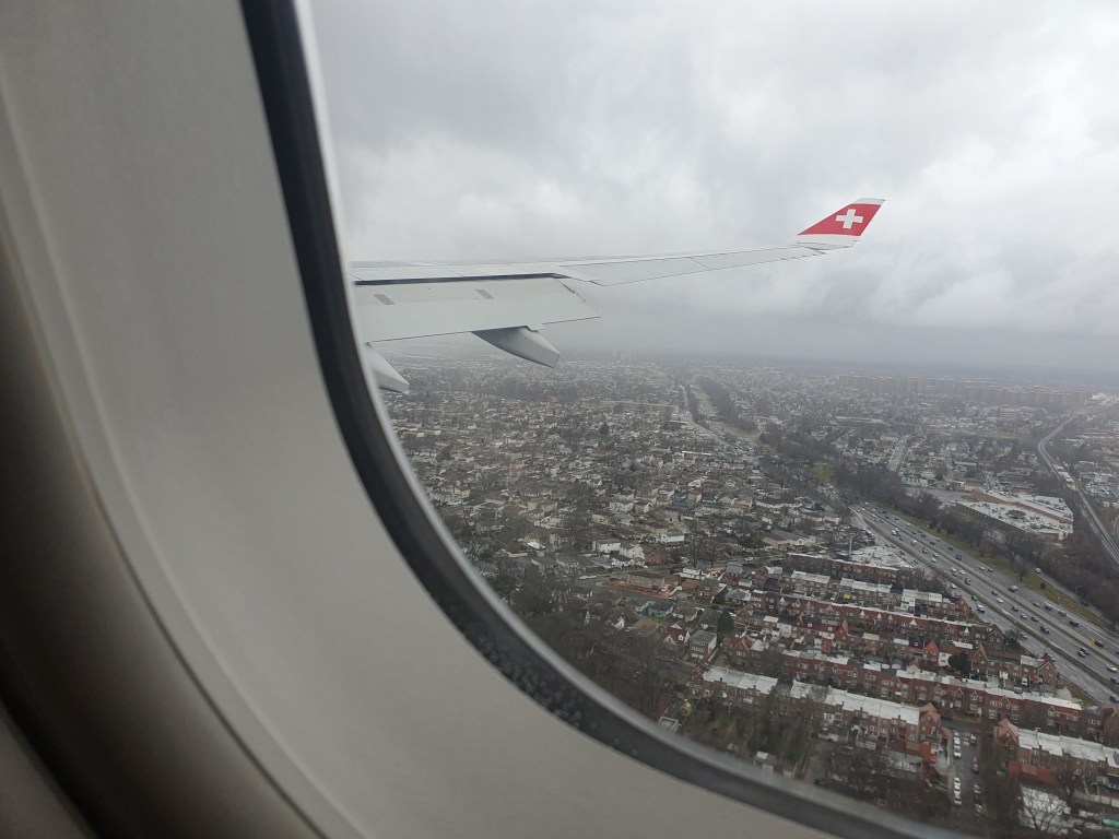 Jestli budu chtít ještě někdy nestihnout navazující spoj a uváznout na letišti, tak rozhodně se SWISS Air. Po noci a výborné snídani ve 4* hotelu vyspinkaní do růžova jdeme na letiště v Zürichu zkusit odletět do New Yorku. Po asi 2 km nachozených po terminálu objevujeme náš gate a Airbus.😀