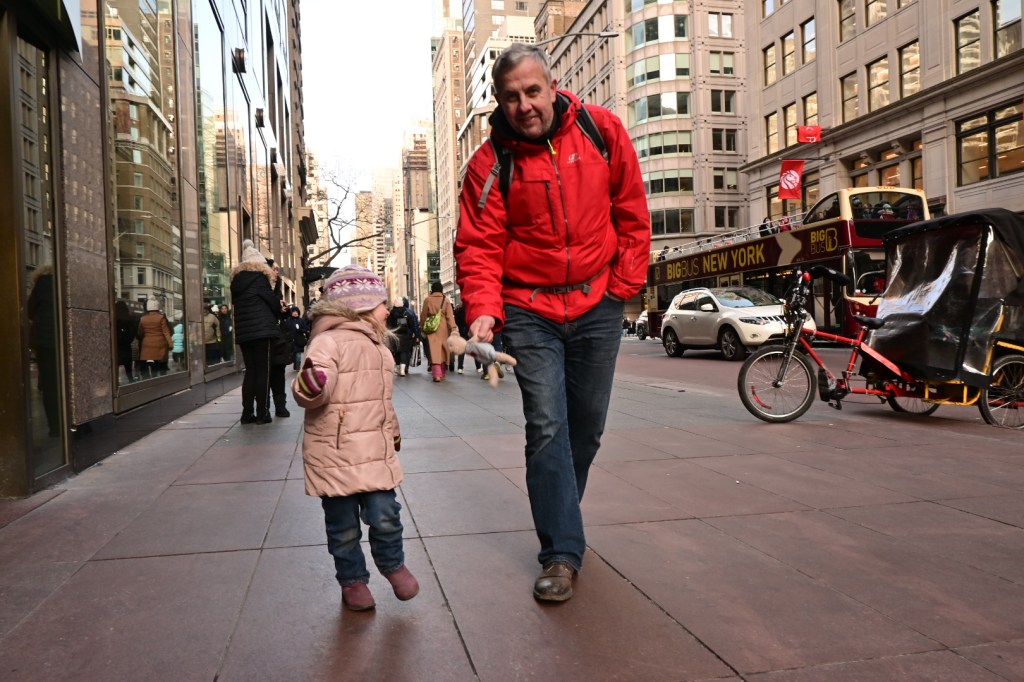 Když vystoupíte z podzemí na ulici, dýchne na vás ta velikost, ta pompéznost a ta jedinečnost v okamžiku bytí. Svítilo sluníčko a mrakodrapy se tyčily všude kolem nás a v té chvíli se cítíte strašně malincí. Vánoční výzdoba ve své občasné kýčovitosti vám trošku zjemní ten prostor mezi sklobetonovými výškovými budovami a zvedne vám to náladu v tom davu, který se přesunuje z jedné strany Manhattanu na druhou.
