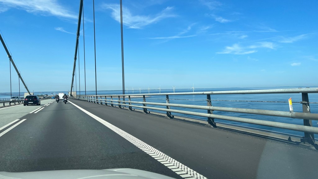 Dnes jsme kolem 9:30 vyrazili z kempu zase o kousek dál a to na ostrov Fyn. Cestu mezi největšími ostrovy Sjæland a Fyn překonávající průliv Velký Belt jsme přejeli po visutém mostě dlouhém 18 km. Most tu stojí už 25 let a i my jsme na jeho stavbu přispěli povinnou částkou 37,50 €.