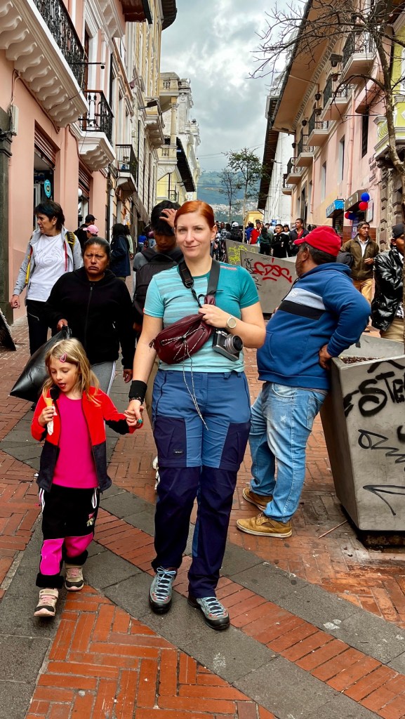 Díky časovému posunu jsme vzhůru už od 5-ti hodin a těšíme se až vyjde slunce a my budeme moci vyrazit do města 😜 Na 7:00 nám paní domácí připraví výbornou ekvádorskou snídani, balíme a vyrážíme do centra. Nevíme co si obléci, jsme 22 km od rovníku, ale v Andách😅….tak bereme plný batoh oblečení