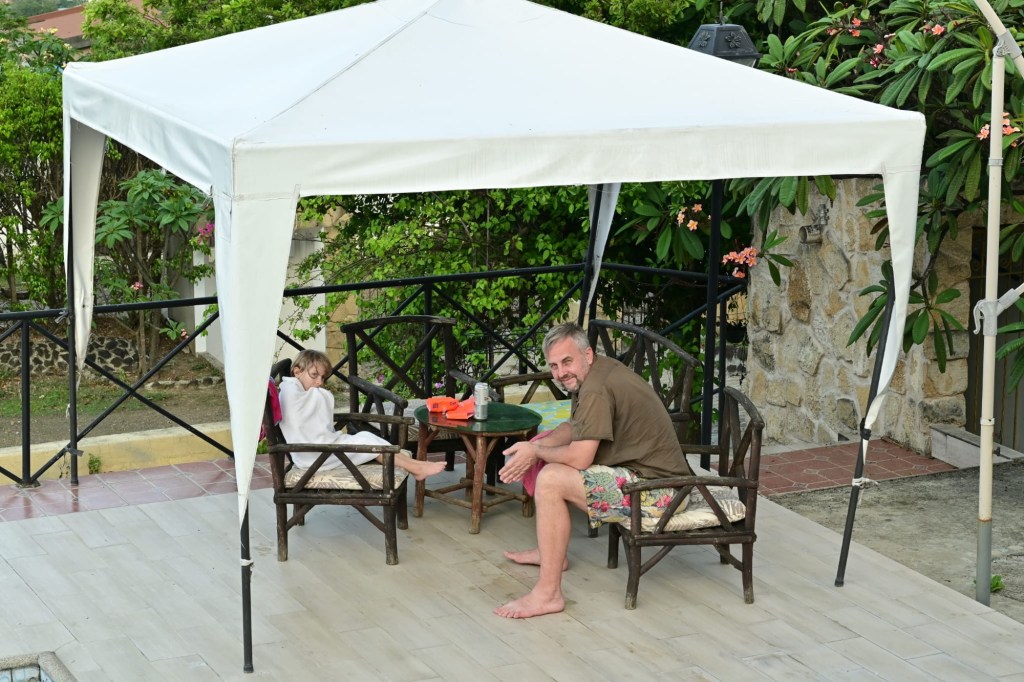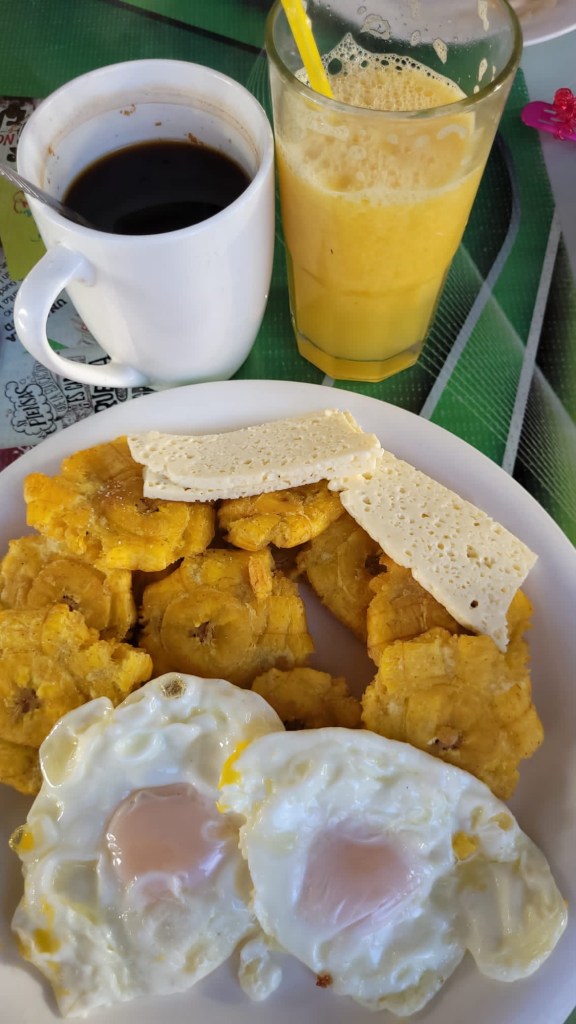 Město Quevedo není architektonický skvost, ale je to nejrychleji se rozvíjející město v Ekvádoru a to především světové produkce banánů, kakaa a kávových zrn. No a ke snídani zde dostanete hrnek horké vody, do níž si nasypete rozpustnou kávu připravenou na stole 😀 K tomu dobrý sýr, vejce a smažené banány. Jo a čerstvé džusy jak z banánů, ostružin a dalších plodů jsou výborné ! 👍