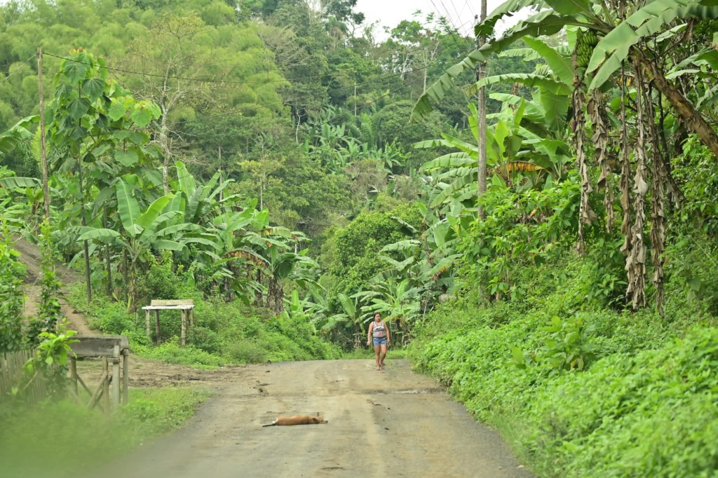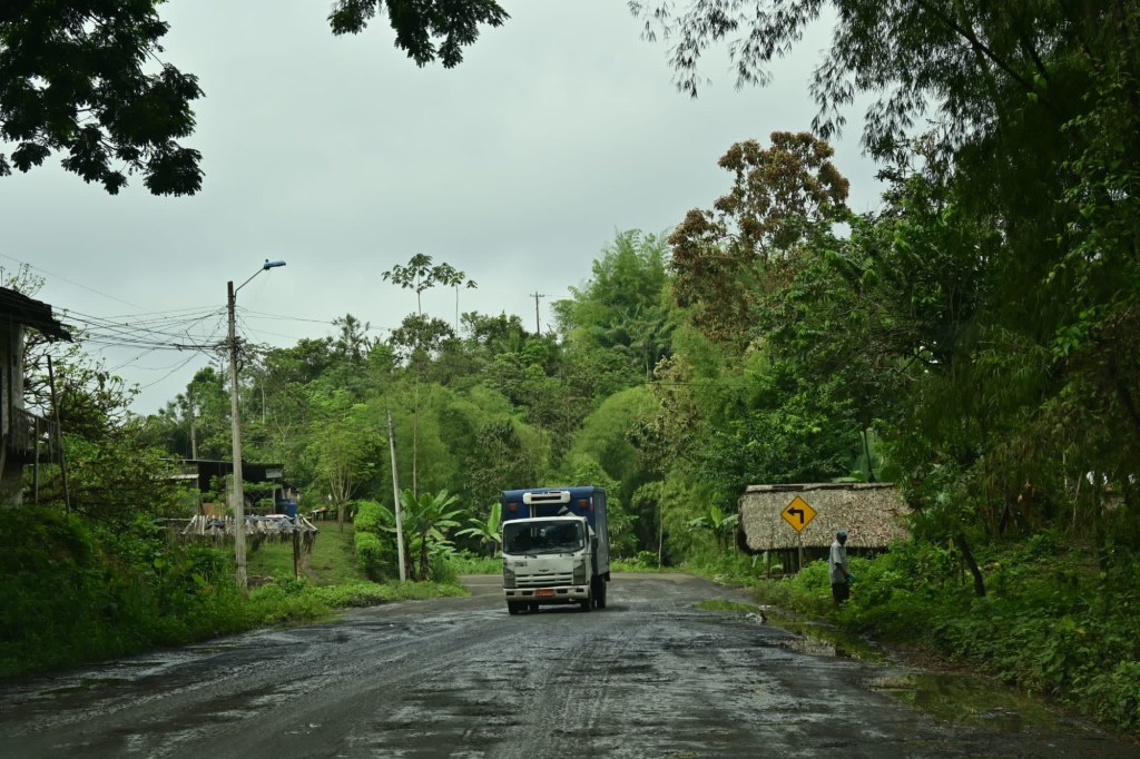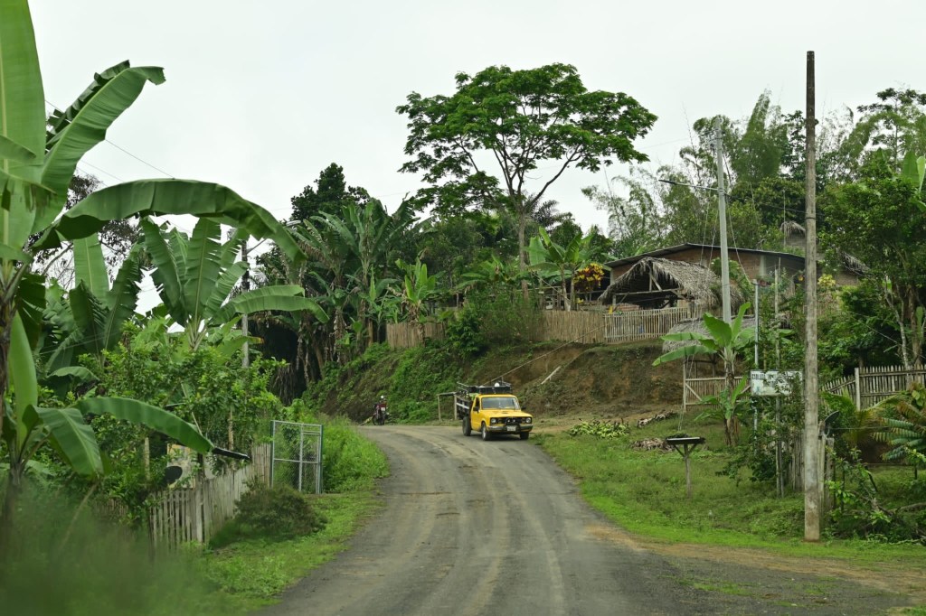 Za městem Pichincha na dlouhou skončila civilizace a my jsme desítky kilometrů a pár hodin je-li pouze v tropickém pralese. Občas nějaká dřevěná chatrč jinak daleko široko vůbec nic, natož signál v telefonu 😂 Z té rozbité silnice jsme odbočují ještě na horší abychom se zajeli podívat k vodopádu. Těch 12 km jsme jeli hodinu a vůbec jsme si nebyli jistí jestli dojedeme. To byl zase nápad 🤗 Naštěstí jsme ty rozbahněné cesty v prudkém srázu zvládli a přijeli zase do civilizace, ale bylo to opravdu náročné a nedoporučujeme bez auta 4×4.