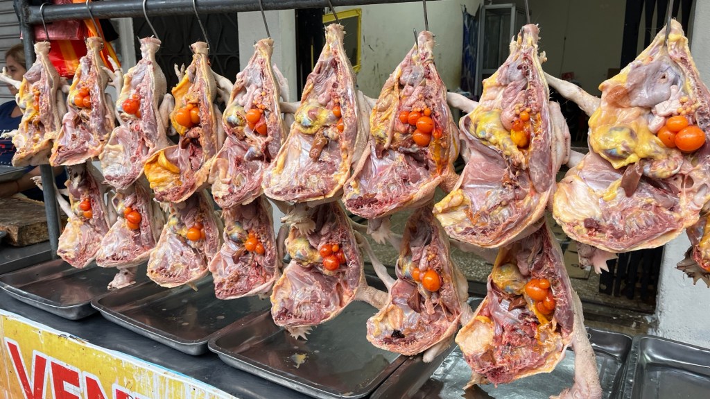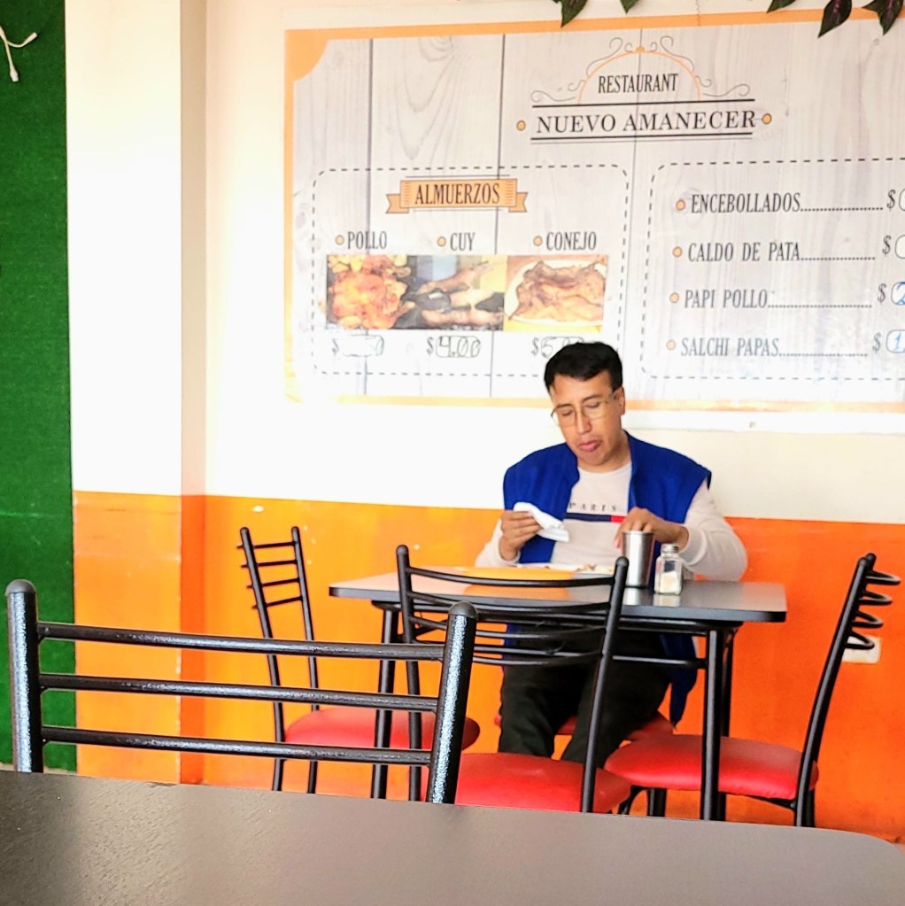 Dali jsme si výborný oběd a následně projíždíme kolem restaurací, před kterými opékají Cuy – morčata, škoda ….snad je ochutnáme příště.