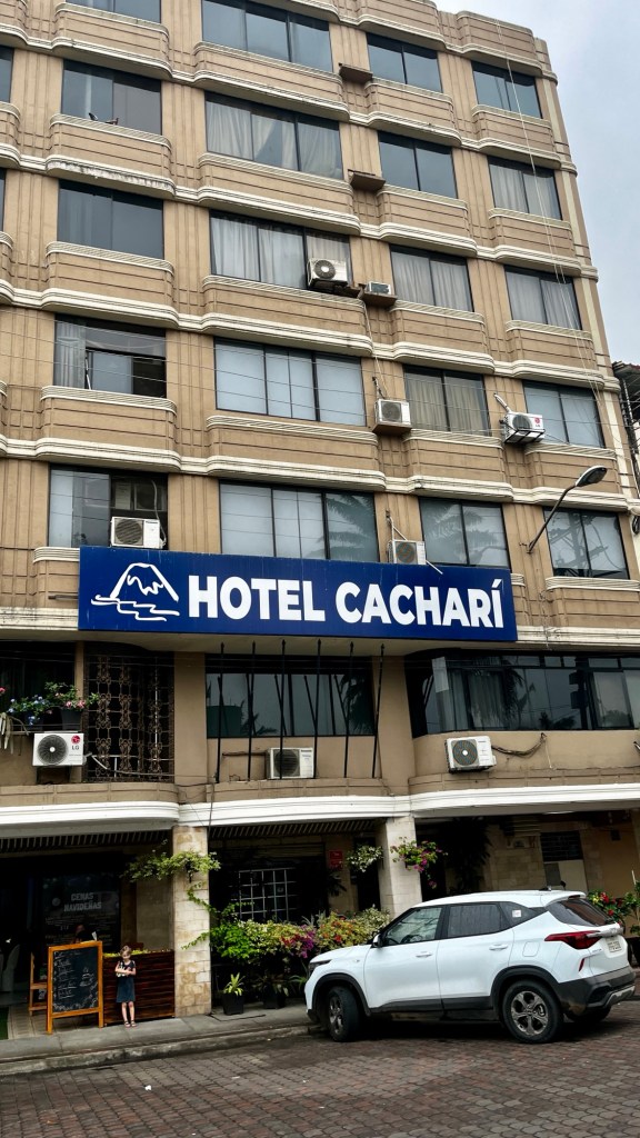 Hlavu jsme nakonec složily v hotelu Cacharí ve městě Babahayo. Už taky zažil lepší časy 😇