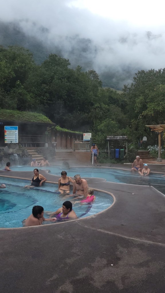 Po poslední snídani si zabalíme batohy a ještě naposledy vyrážíme do termálních bazénů, které jsou součástí našeho hotelového komplexu a máme vstupné v ceně. Vstupné do tohoto balneária je ale i tak docela dobré, kdy dospěli zaplatí 10$ a děti poloviční. Je to prostě úžasné když si užíváte 40 stupňů vody, 10 stupňů okolí a řídký vzduch ve výšce 3300 m.n.m – kde jinde na světě si to můžete užít? 😀