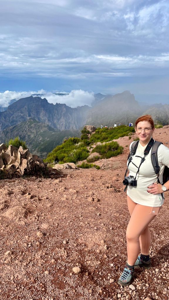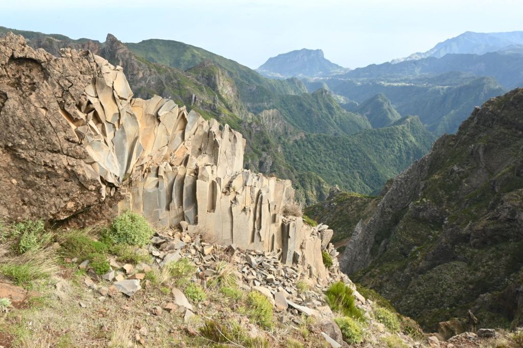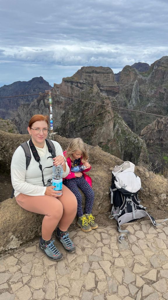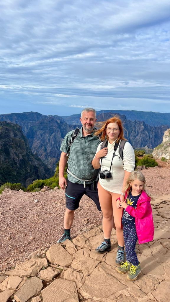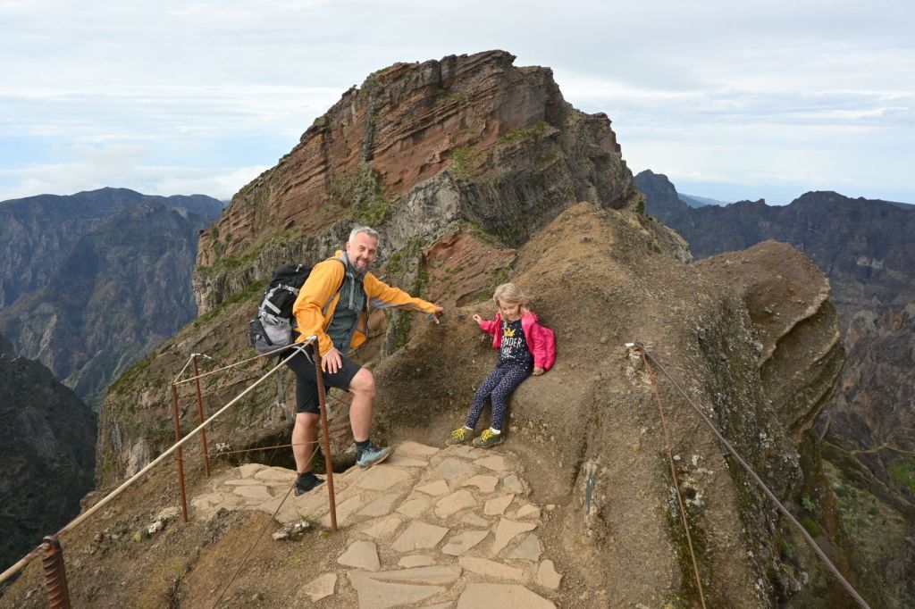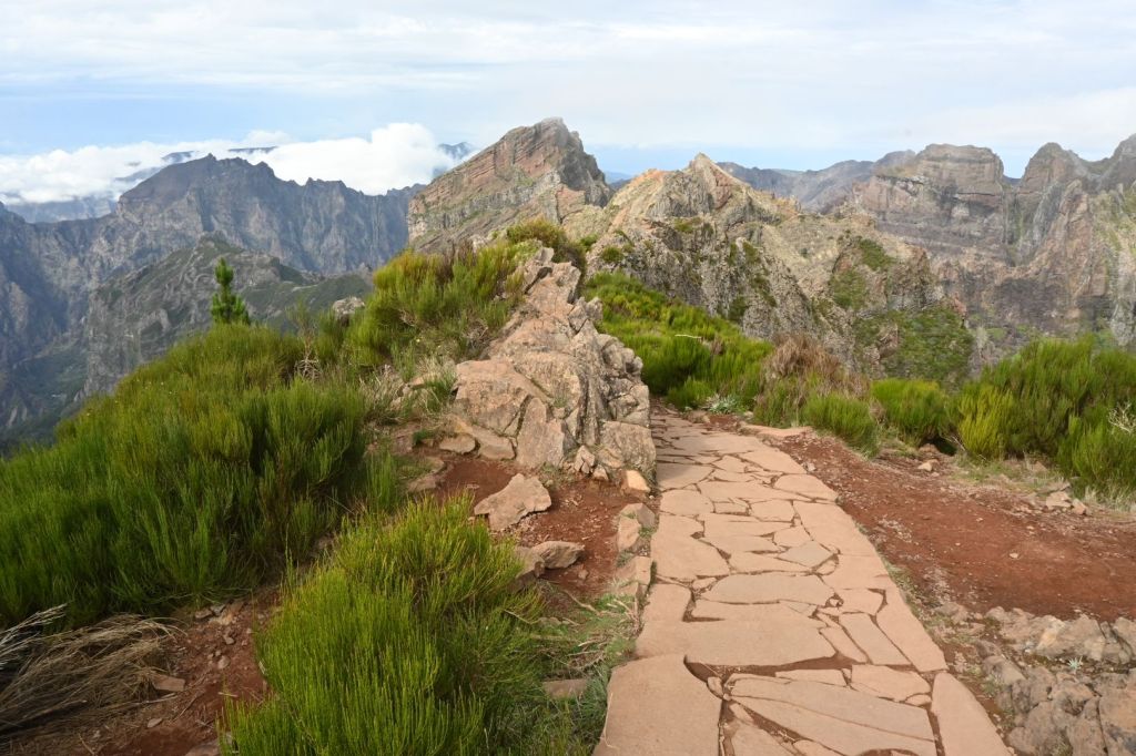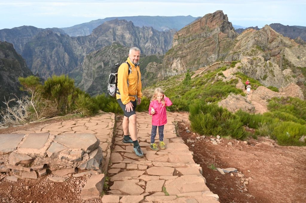 Vyjet autem se dalo až do výšky 1.690 m a k vrcholu vedla asfaltka, ale hlavním cílem cesty byla beztak až turistická trasa za vrcholem PR1, což je superatraktivní, nenáročná, šestikilometrová trasa spojující Pico do Areeiro s nejvyšší horou Madeiry Pico Ruivo. Bohužel je z ní aktuálně zpřístupněn pouze 1 km. Nám to rozhodně stačilo a výhledy byly překrásné i tak. Přece jen to nebylo úplně po rovině a „brácha“ už se docela pronese.
