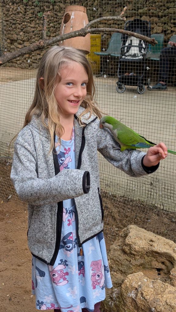 To se potvrzuje i na další zastávce v zoo v Castellar a večer v kempu, kde sice restaurace otevřená je, ale večeře vaří jen od 20 do 23 h jen v pátek a v sobotu. Zoo potěšila děti i nás, mají tu hlavně mnoho druhů opic, pár velkých koček atd., ale hlavní atrakcí byla velká “kontaktní” voliéra s různými druhy papoušků, které jsme mohli krmit.