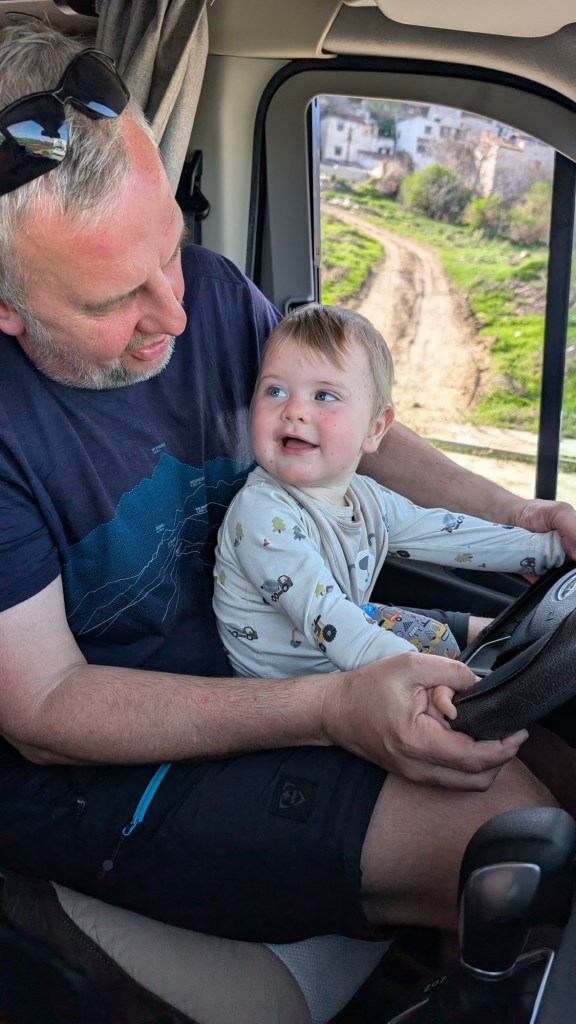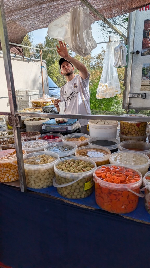 Ráno bylo tepleji a tak jsme si naplánovali procházku městečkem Jimena de la Frontera, spíše takový okruh. Nejprve jsme se prošli podél řeky, jejíž okolí ovšem zpustošily nedávné povodně a na mapách nakreslená cesta byla brod 😄 a potom se vydali ke hradu. Městečko bez turistů bylo krásné a tak jsme procházeli úzkými uličkami, tu si dali s místními kávu, tu si na tržnici koupili výborné olivy.