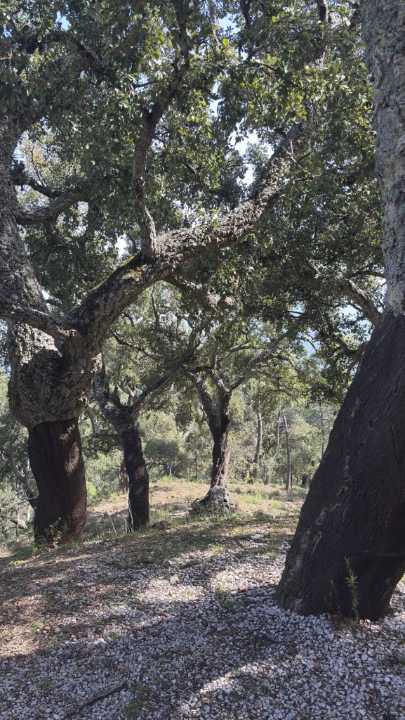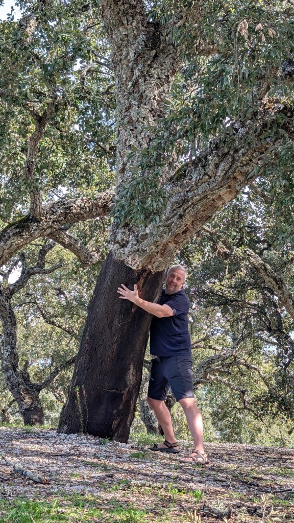 My tady zase viděly korkové duby, a tak jsem si musel kus korku vyříznout, jestli nekecají 😁 Možná to víte, ale já vůbec netušil jak to ty stromy s tím korkem mají. Až po 25 letech se poprvé loupe kůra a potom každých asi 10 let. U 55 letého dubu je korek tak kvalitní, že se z něho dají dělat špunty 👍😎 Dobrý co?