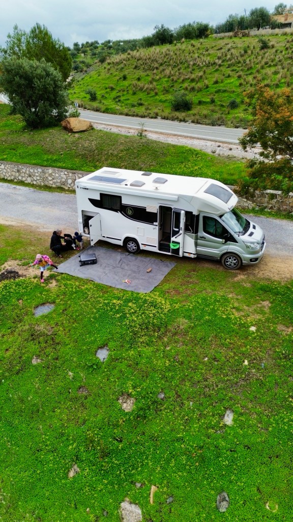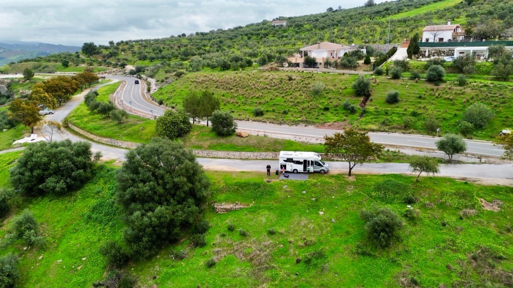 Naši poslední noc na naší cestě po Andalusii jsme strávili na piknikovém místě s výhledem na město Tolox a okolní hory.